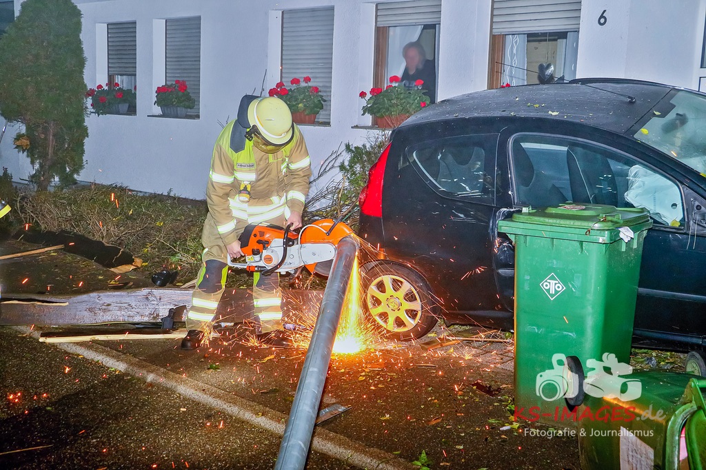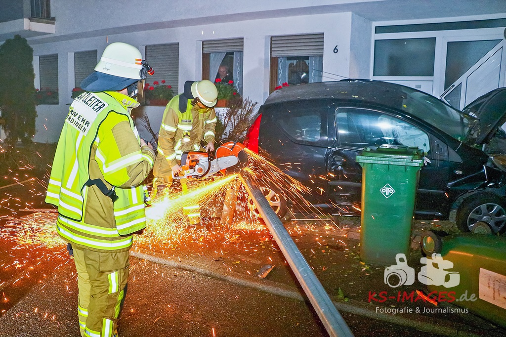 Die Fahrerin wurde durch den Rettungsdienst in ein Krankenhaus verbracht. Der Peugeot war infolge des Verkehrsunfalls nicht mehr fahrbereit und wurde durch ein Abschleppunternehmen von der Unfallstelle entfernt. Bei dem Verkehrsunfall entstand ein geschätzter Gesamtschaden von etwa 6.000 Euro. Die Feuerwehr war mit zwei Fahrzeugen und zwölf Mann im Einsatz. Zudem waren ein Rettungswagen sowie ein Notarzt eingesetzt. Zur Unfallaufnahme befanden sich zwei Streifenbesatzungen des Polizeireviers Ditzingen und eine Streifenbesatzung der Verkehrspolizeiinspektion Ludwigsburg vor Ort. (Fotos: Andreas Rometsch)