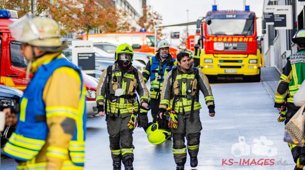 AFFALTERBACH: Rund 80 Einsatzkräfte mehrerer Feuerwehren rückten am Dienstagmittag zu einem Unternehmen in Affalterbach aus. Dort war gegen 12:00 Uhr in einem Gebäude mutmaßlich aufgrund eines technischen Defekts eine Lithium-Ionen-Batterie in Brand geraten, die in der Folge eine weitere Batterie in Mitleidenschaft zog.