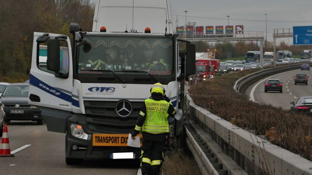 0 A81-LUDWIGSBURG: Vermutlich aufgrund eines gesundheitlichen Problems ist der 47-jährige Fahrer eines Lkw-Gespanns am Dienstag gegen 08:50 Uhr auf der A 81 Heilbronn-Stuttgart zwischen den Anschlussstellen Ludwigsburg Nord und -Süd vom rechten Fahrstreifen nach links in die Mittelleitplanke gefahren. Dabei entstand Sachschaden von etwa 7.500 Euro.