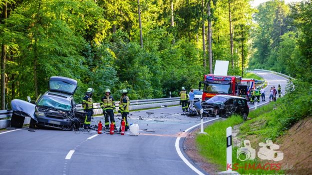MARBACH-RIELINGSHAUSEN: Sieben leicht verletzte Personen und ein Sachschaden in Höhe von 55.000 Euro sind die Bilanz eines Unfalls, der sich am Sonntag gegen 18.00 Uhr auf der Kreisstraße 1607 zwischen Kleinaspach und Rielingshausen ereignete. Ein 42-jähriger Renault-Fahrer befuhr die K1607 von Kleinaspach kommend in Fahrtrichtung Rielingshausen. Seinen Angaben zufolge kam er auf Grund der tiefstehenden Sonne einer dortigen Rechtskurve nach links in den Gegenverkehr und kollidierte mit einem entgegenkommenden 63-jährigen Audi-Fahrer.