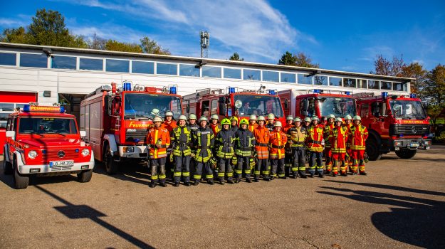 MARBACH AM NECKAR: Auch in diesem Jahr gab es wieder eine Grundausbildung in der Feuerwache Marbach, bei der wir mit insgesamt 22 Teilnehmer ausgebildet wurden. Die Gruppe bestand aus 21 Männer und einer Frau aus insgesamt zwölf verschiedenen Feuerwehren. Der Lehrgang fand im Zeitraum vom 17. September bis 26. Oktober, immer Dienstag und Donnerstag abends 3 Stunden und samstags 8 Stunden statt.