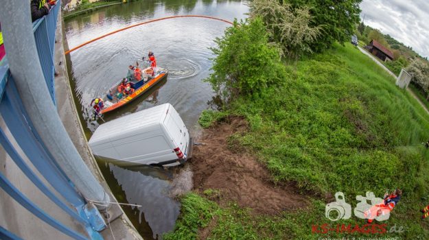 BENNINGEN: Am Samstag, den 11.05.2019, gegen 06.30 Uhr kam es auf der Landesstraße 1138 zwischen Benningen und Marbach zu einem spektakulären Unfall. Der 33-jährige Fahrer eines Kleintransporters befuhr die Landesstraße 1138 von Marbach kommend in Richtung Benningen. In der Linkskurve vor der Neckarbrücke, touchierte er zunächst aus bislang ungeklärter Ursache die am rechten Fahrbahnrand verbaute Leitplanke. Im weiteren Verlauf fuhr er am Ende der Leitplanke, unmittelbar vor Beginn der Neckarbrücke, rechts die sehr steil abfallende Böschung hinunter und kam erst im Neckar zum Stillstand.