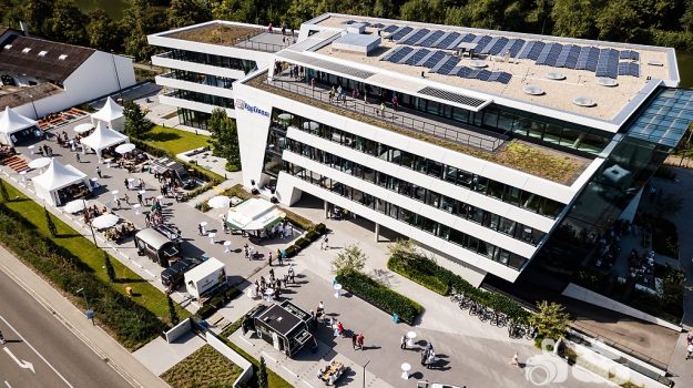 MARBACH AM NECKAR: Luftimpressionen Open House EgeTrans am 16.09.2018. Nach zweieinhalb Jahren Bauzeit freuen wir uns, Ihnen unser neues Verwaltungsgebäude präsentieren zu können, so lud die Firma die Bürger Marbach´s ein.