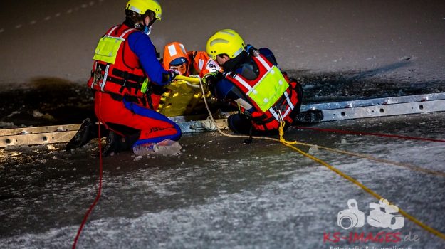 0 BENNINGEN: Es ist dunkel und bitterkalt, an diesem Abend wird die Temperatur bis auf minus acht Grad Celsius fallen, aber eine kleine Gruppe der Feuerwehr Marbach, welche bei diesen Temperaturen sich in auf und in einen zugefrorenen See in Benningen wagt. Die Wasserrettungsgruppe bestehend aus 19 Kameraden, üben den Ernstfall. Das Eis ist dick, es muss ein Loch geschlagen werden, sofort springt einer ins Wasser. Mit Steckleitern, Schlauchboot und Spineboard werden die verschiedensten Techniken geübt. Ein ausführlichen Bericht lesen Sie bei der Marbacher Zeitung.