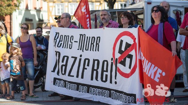 BACKNANG: Am Samstag, 29. August, rief die Initiative Rems-Murr Nazifrei, das JuZe Backnang und einige Backnanger Bürger-/innen alle dazu auf, als Reaktion auf die rechten Übergiffe im Rems-Murr-Kreis und die abgebrannte Flüchtlingsunterkunft in Weissach, an einer Kundgebung am Obstmarkt in Backnang teilzunehmen. Damit wollen wir gemeinsam ein starkes Zeichen gegen Rassismus setzen! so der Veranstalter. (Quelle: Veranstalter)