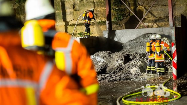 BACKNANG: Am gestrigen Abend gegen 22 Uhr gingen bei der Leitstelle der Feuerwehr mehrere Anrufe ein. Eine dicke schwarze Rauchsäule war über der Fridastraße in Backnang zu sehen. Als die Feuerwehr eintraf, wurde festgestellt dass bei einem Schrottverwerterer ein Haufen mit Metallspäne brannte. Keine Seltenheit so Einsatzleiter der Feuerwehr. Metallspäne, Schleifspäne werden so gut wie immer mit ölhaltigen Kühlmittel bearbeitet. Wenn ölhaltiges Material hochverdichtet ist, kann auch Metall feuer fangen. Der Haufen musste mit Wasser geflutet und auseinandergezogen werden. So wurde im diesem Fall vorgegangen.