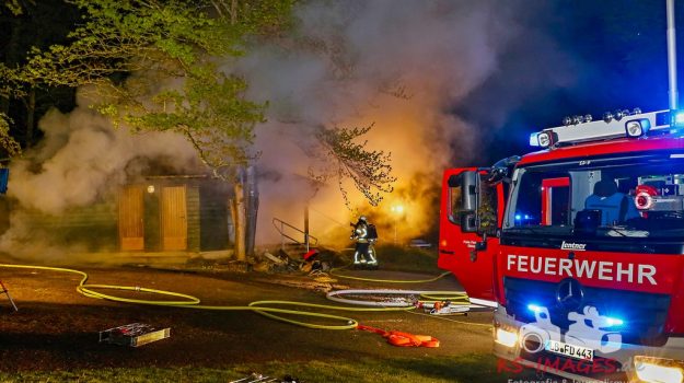 DITZINGEN: Die Freiwilligen Feuerwehren Schöckingen, Ditzingen und Hirschlanden rückte in der Nacht zum Donnerstag mit acht Fahrzeugen und 48 Wehrkräften zu einem Brand in Schöckingen aus, nachdem ein Zeuge gegen 01:00 Uhr eine starke Rauchentwicklung gemeldet hatte. Bei Eintreffen der Feuerwehr- und Polizeikräfte befand sich eine Waldhütte am südlichen Rand des Gewanns „Eulenberg“ in Vollbrand.