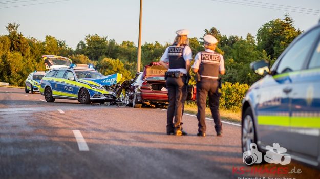 0 KIRCHHEIM AM NECKAR: Bei der Anfahrt zu einem Verkehrsunfall mit Personenschaden auf der B27 bei Kirchheim kam es am Mittwochabend zu einem Unfall, an welchem ein Streifenwagen des Polizeirevier Bietigheim beteiligt war. Der Streifenwagen war auf der B27 von Walheim her kommend in Richtung Kirchheim unterwegs und stieß im Begegnungsverkehr mit einem entgegenkommenden BMW zusammen. Bei dem Zusammenstoß wurden die Beifahrerin im Streifenwagen sowie die beiden Insassen des BMW verletzt. Alle wurden mit dem Rettungsdienst in ein Krankenhaus verbracht. Die Polizeibeamtin war leicht verletzt und konnte nach ärztlicher Versorgung ihren Dienst wieder aufnehmen. Der 25-jährige BMW Fahrer erlitt eine Fraktur am Bein und wurde stationär aufgenommen. Der 27-jährige Beifahrer wurde leicht verletzt. Beide Fahrzeuge waren nicht mehr fahrbereit und mussten abgeschleppt werden. Am BMW entstand Totalschaden in Höhe von ca. 5.000 Euro. Der Sachschaden am Streifenwagen beläuft sich auf ca. 65.000 Euro. Für die Dauer der Unfallaufnahme war die B27 zwischen Kirchheim und Walheim von 19:30 bis 22:30 Uhr voll gesperrt.