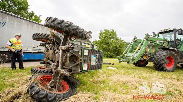Ludwigsburg: Am 01.06.2015 gegen 11.30 Uhr kam es auf der Bundesstraße 10 im Bereich Vaihingen/Enz zu einem Verkehrsunfall zwischen einem Traktor mit Anhänger und einer Sattelzugmaschine. Der 51-jährige Fahrer der Sattelzugmaschine wollte den vor ihm fahrenden Traktor eines 18-Jährigen überholen, als er in Richtung Pforzheim unterwegs war. Der 18-Jährige wollte während des Überholvorgangs seinerseits nach links auf einen Feldweg abbiegen und stieß mit dem Überholer zusammen. Durch den Aufprall kippte der Traktor nach rechts auf die Seite, wobei sich der 18-Jährige schwer verletzte und vom Rettungsdienst in ein Krankenhaus gebracht wurde. Der Fahrer der Sattelzugmaschine blieb unverletzt. Der umgekippte Traktor wurde mit einem weiteren Traktor wieder auf die Räder gestellt. Der Gesamtschaden liegt bei etwa 15.000 Euro.
