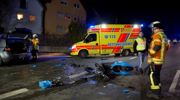 Krankenhaus gebracht werden. Der Sozius schwebt derzeit noch in Lebensgefahr und wird intensivmedizinisch versorgt. Ein 55-jähriger Autofahrer war gegen 18:50 Uhr auf der Großbottwarer Straße in Richtung Ortsausgang unterwegs und übersah beim Linksabbiegen in die Ottmarsheimer Straße den entgegenkommenden Roller der beiden Jugendlichen. Den polizeilichen Ermittlungen zufolge hatten die Jugendlichen Schutzhelme getragen. Die beiden Fahrzeuge waren nach der Kollision nicht mehr fahrbereit und wurden von der Polizei sichergestellt. Für die Dauer der Unfallaufnahme und der Bergungsarbeiten musste die Großbottwarer Straße in beiden Richtungen bis gegen 22:00 Uhr gesperrt werden. An der Unfallstelle waren fünf Fahrzeuge des Rettungsdienstes mit zwei Notärzten, vier Streifenbesatzungen der Polizei und 19 Einsatzkräfte der Freiwilligen Feuerwehr Mundelsheim im Einsatz. Die Feuerwehr übernahm die Ausleuchtung des Unfallortes und die Reinigung der Fahrbahn.