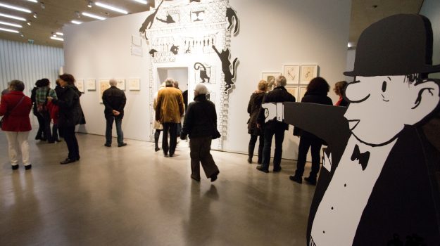 neu entdeckt werden. Die Schau versammelt Schätze aus dem Nachlass, die bislang unbekannt waren: frühe Zeichnungen sowie Zeichnungen für Freunde und Bekannte, nie gesehene Möpse und die überraschenden »Nachtschattengewächse«, die Loriot in den schlaflosen Stunden seiner letzten Lebensjahre schuf. Der Rundgang beginnt mit den »Frühstücken«, führt zu den Zeichnungen »Große Deutsche« und »Privates/Halbprivates«, dann die »Möpse« und den späten »Nachtschatten«. Im Bewegtbild wird anhand von selten gesehenen Zeichentrickfilmen an Loriots Ausflüge in die Werbelandschaft erinnert. Ein besonderes Highlight ist das »Gästebuch«: Loriot fotografierte seine Gäste in stets gleichbleibender Kulisse in höchst unterschiedlichen (Selbst-)Inszenierungen. Ausgewählte Fotos zeigen ein amüsantes Gesellschaftspanorama mit Freunden, Verwandten und Künstlerkollegen und geben die Gelegenheit, Vicco von Bülow als Fotografen zu entdecken. (Quelle: Literaturhaus München)