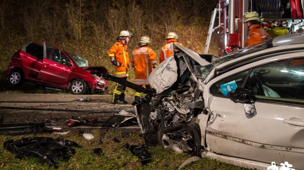 Drei Personen zogen sich bei einem schweren Verkehrsunfall am Samstagabend auf der Landesstraße 1100 schwere Verletzungen zu. Ein 64 Jahre alter Renault-Fahrer war gegen 20:15 Uhr
