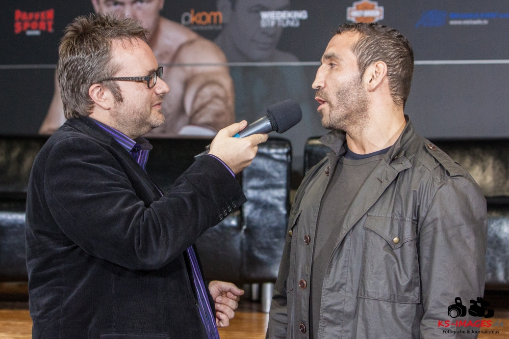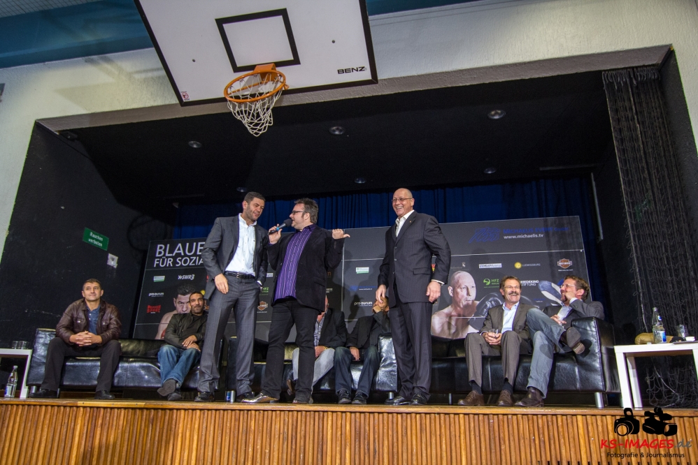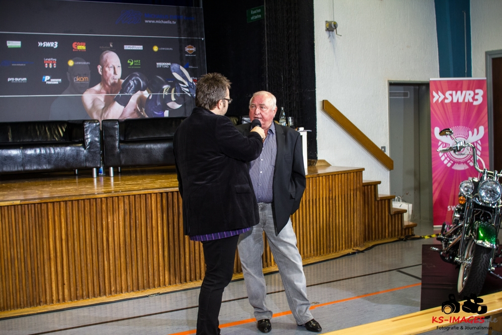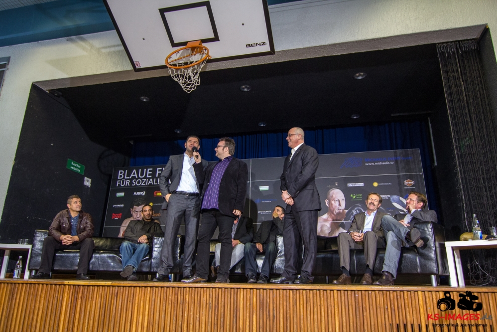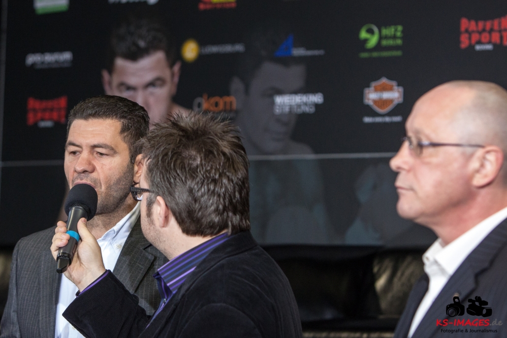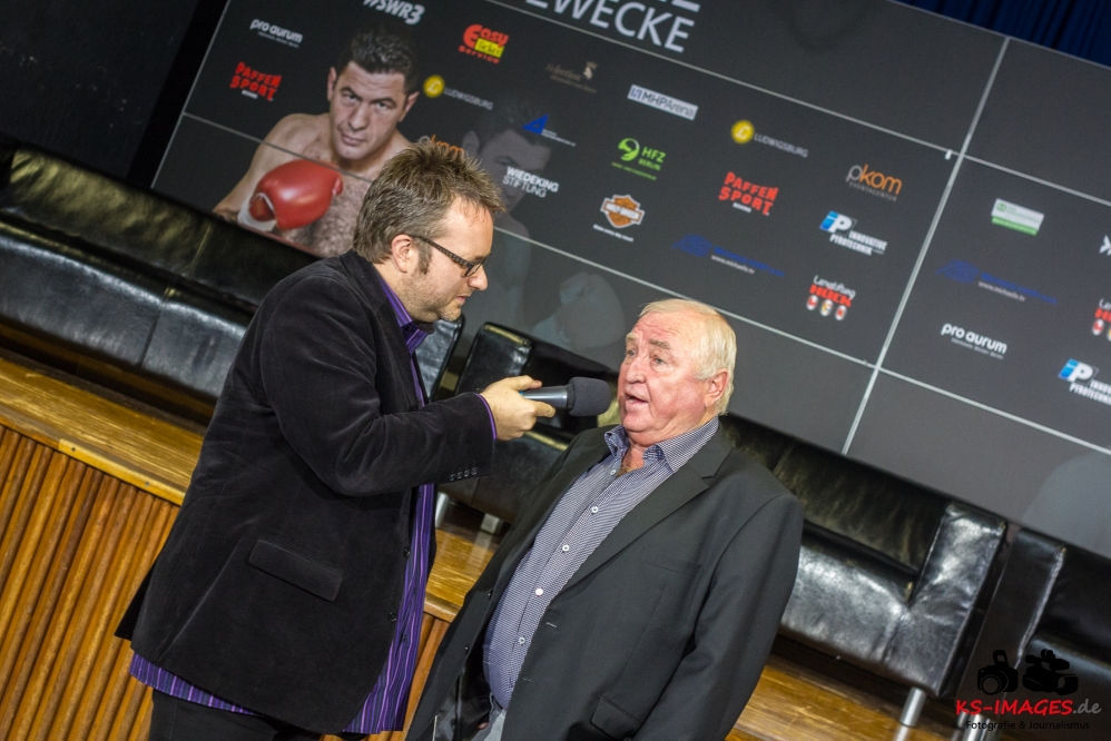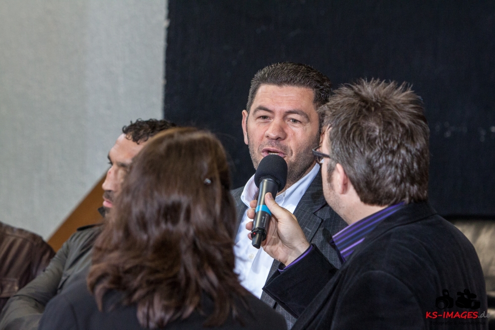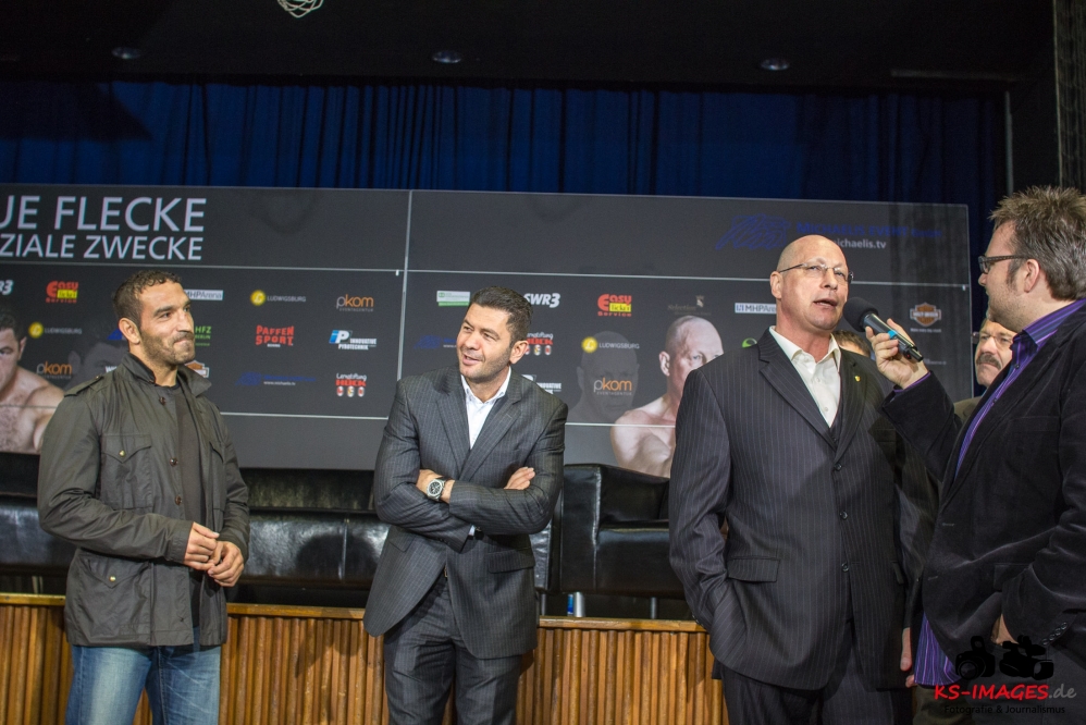 Gesamtbetriebsratsvorsitzenden der Porsche AG Uwe Hück (Thaiboxer) und dem früheren Schwergewichts-Boxprofi Luan Krasniqi statt. Rede und Antwort standen auf der Pressekonferenz heute neben Uwe und Luan der SWR Moderator der Boxnacht, Ben Streubel, der Veranstalter Bernd Michaelis sowie der Erst Bürgermeister der Stadt Ludwigsburg Konrad Seigfried.