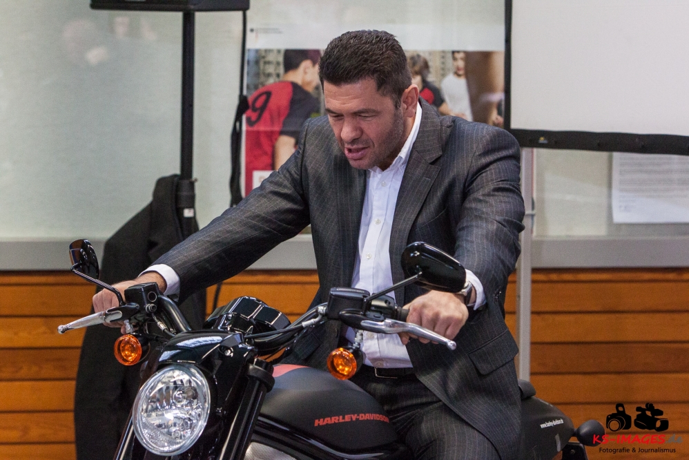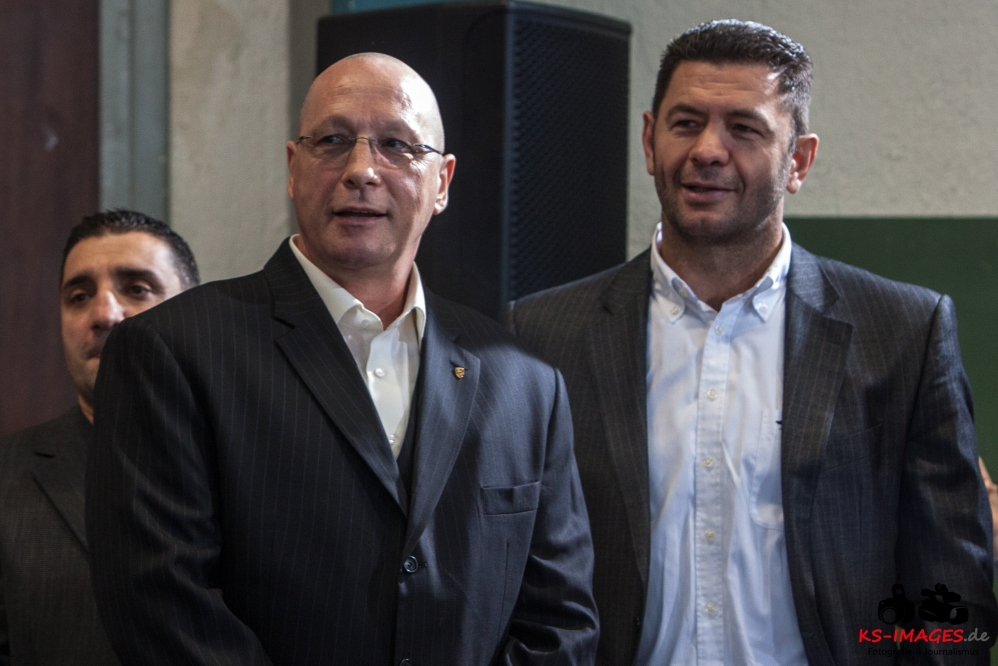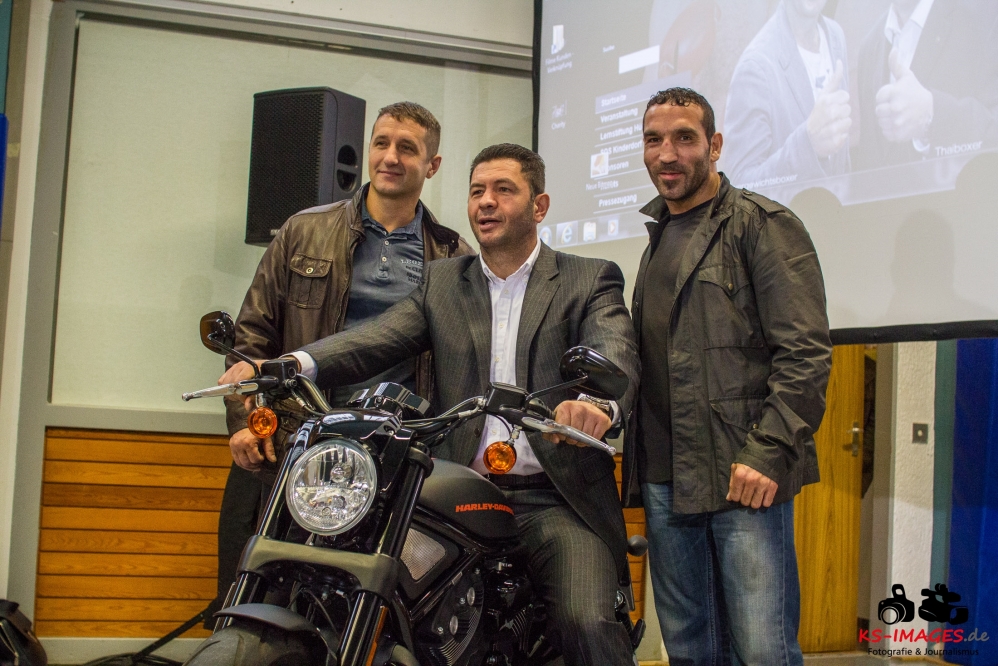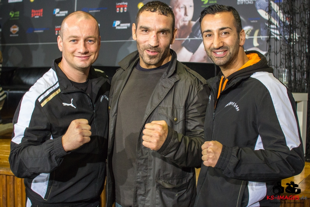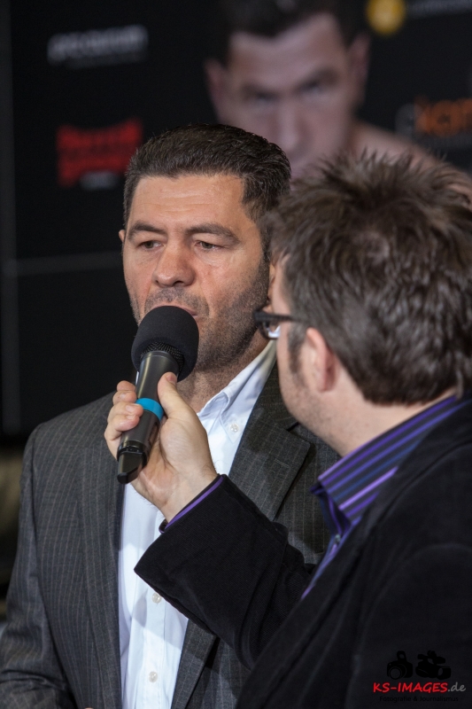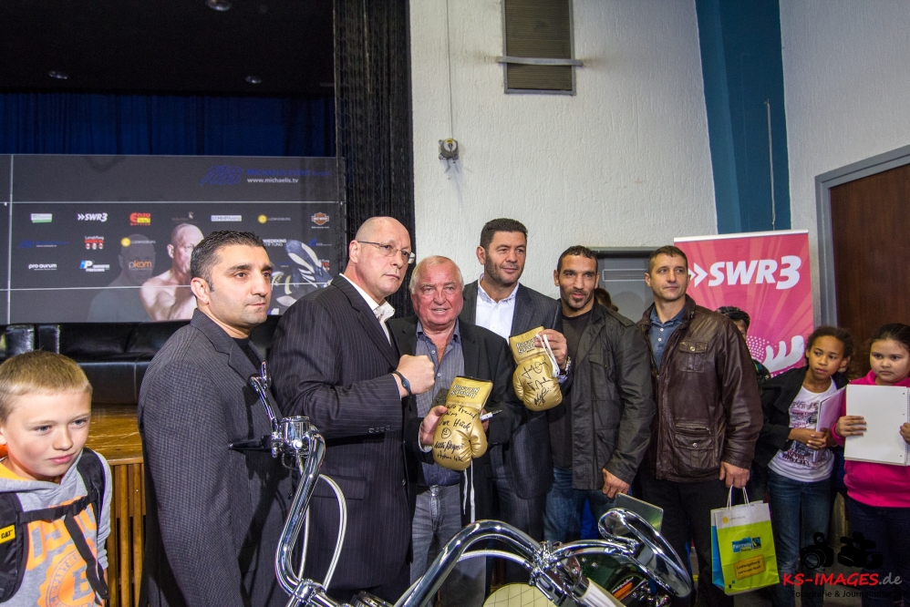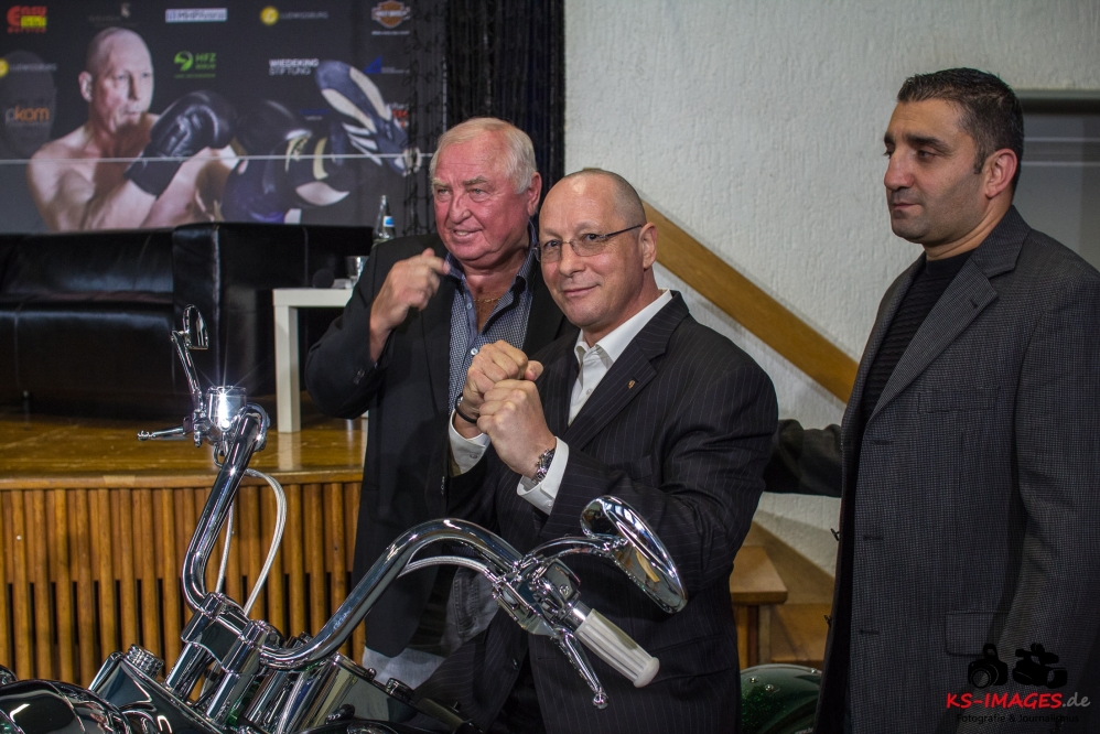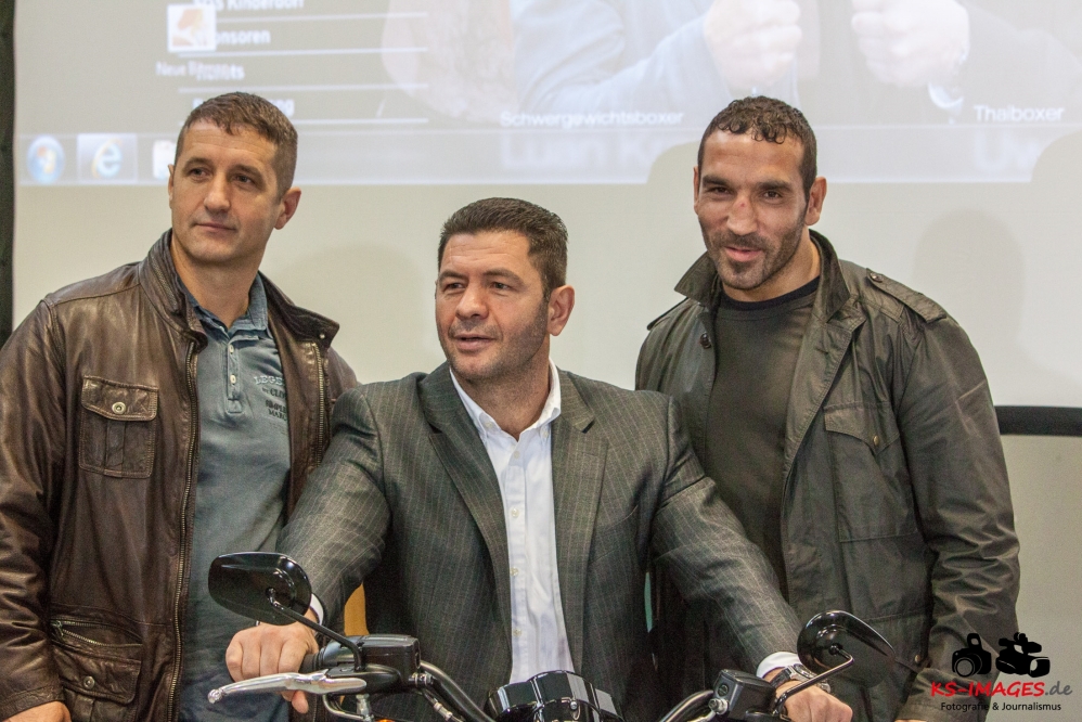 Gesamtbetriebsratsvorsitzenden der Porsche AG Uwe Hück (Thaiboxer) und dem früheren Schwergewichts-Boxprofi Luan Krasniqi statt. Rede und Antwort standen auf der Pressekonferenz heute neben Uwe und Luan der SWR Moderator der Boxnacht, Ben Streubel, der Veranstalter Bernd Michaelis sowie der Erst Bürgermeister der Stadt Ludwigsburg Konrad Seigfried.