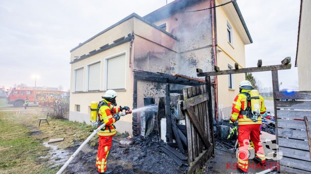 PLEIDELSHEIM: Am frühen Sonntagabend geriet gegen 17.10 Uhr ein neben der Sammelunterkunft in der Marbacher Straße stehender Unterstand aus Holz in Brand. Ursächlich hierfür ist ersten Ermittlungen zufolge ein technischer Defekt an einem Stromverteilerkasten. Der Dachbalken sowie die Fassade der Sammelunterkunft wurden durch die Flammen in Mitleidenschaft gezogen, das Feuer konnte durch das schnelle Eingreifen der Feuerwehr rechtzeitig gelöscht werden.