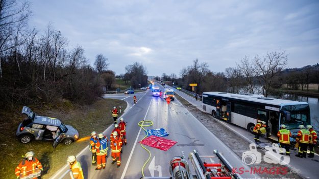 MUNDELSHEIM: Am Sonntagnachmittag kam es gegen 17:50 Uhr auf der Strecke zwischen Pleidelsheim und Mundelsheim zu einem Unfall, bei der eine Fahrerin schwer verletzt wurde. Die 18-jährige Fahrerin eines Mini wollte aus Richtung Steinheim-Höpfigheim kommend an der Einmündung der K1700 in Richtung Pleidelsheim abbiegen. Hierbei übersah sie den aus Richtung Mundelsheim kommenden, vorfahrtsberechtigten Linienbus, welcher ebenfalls nach Pleidelsheim fahren wollte.