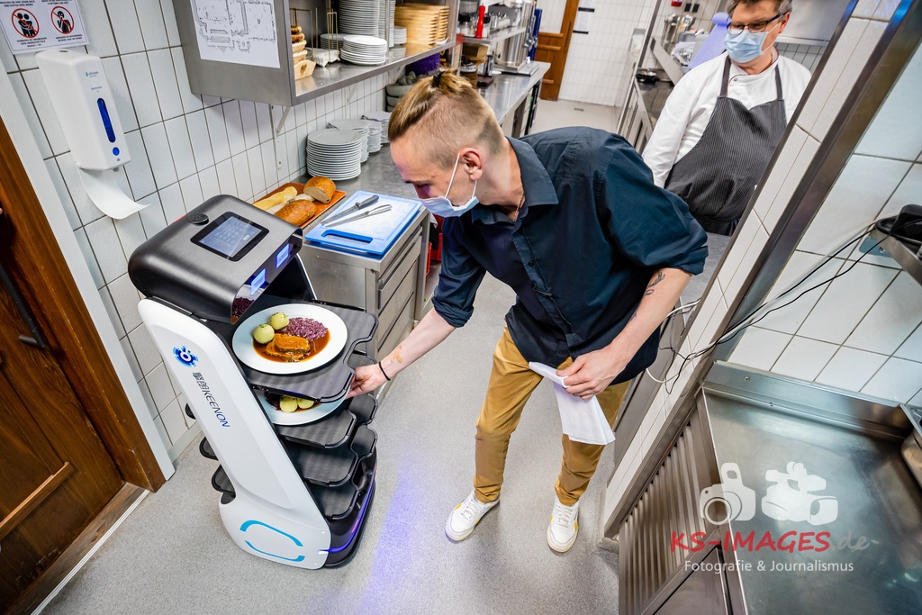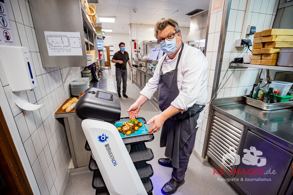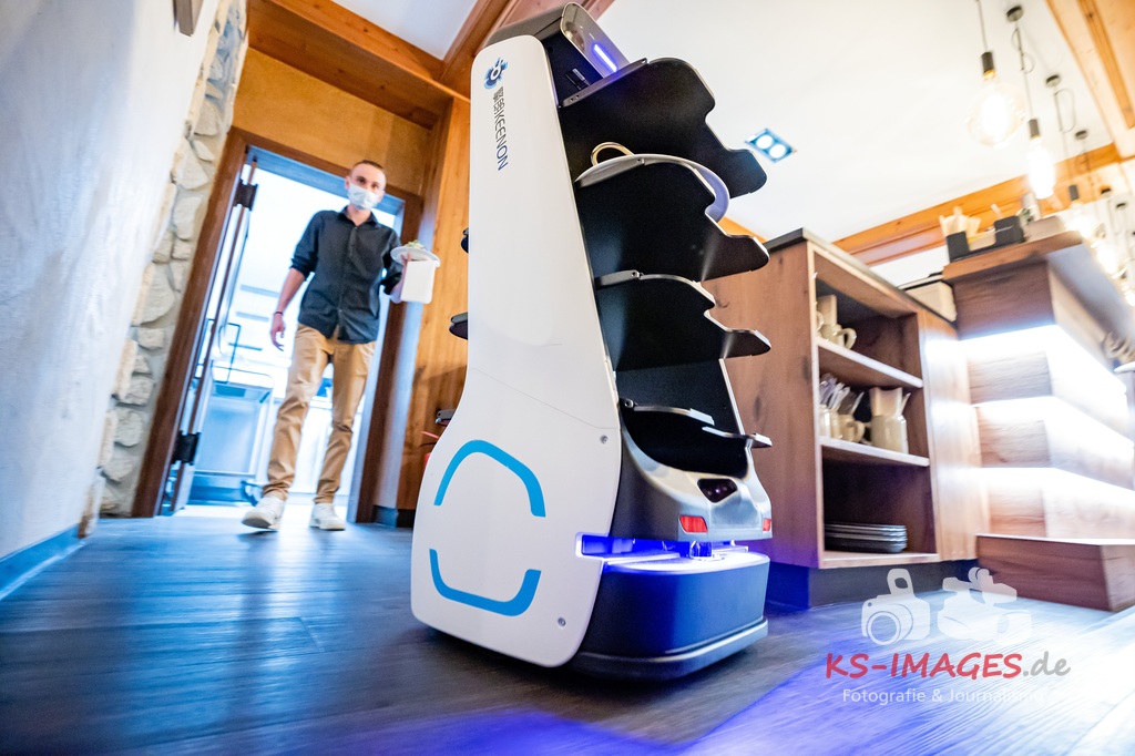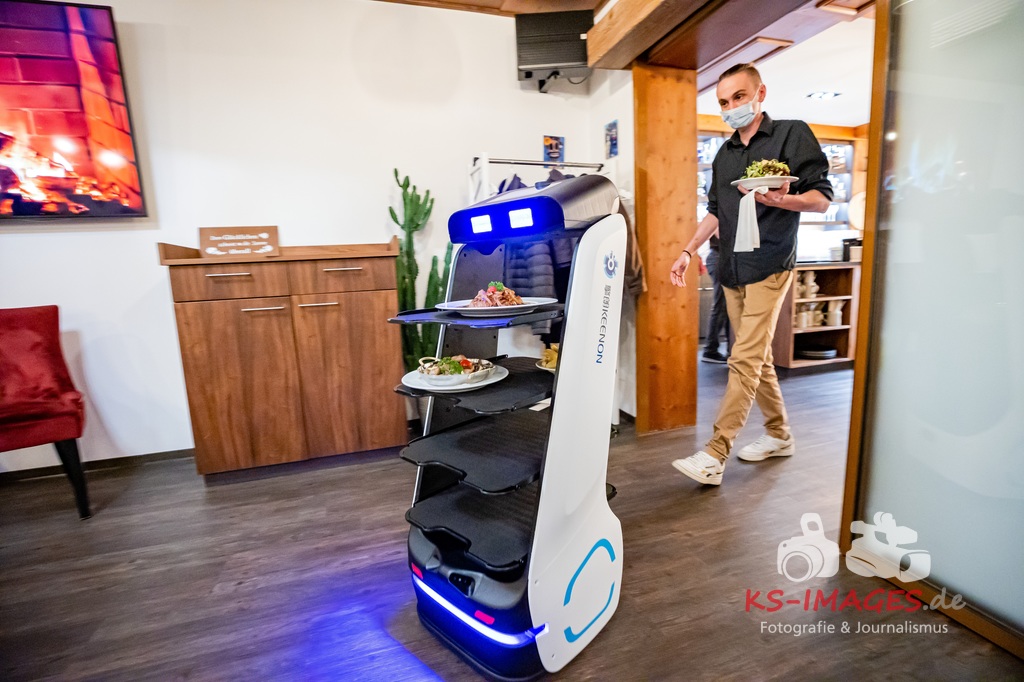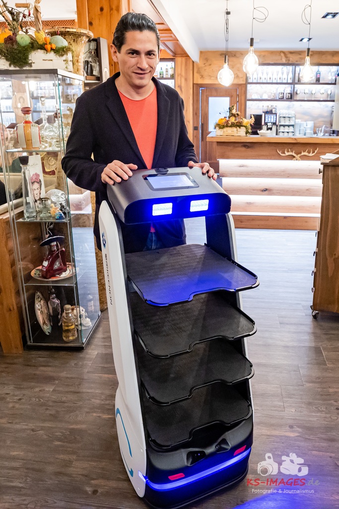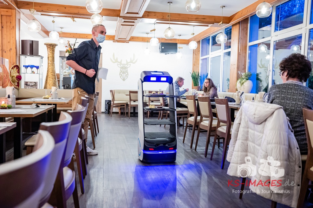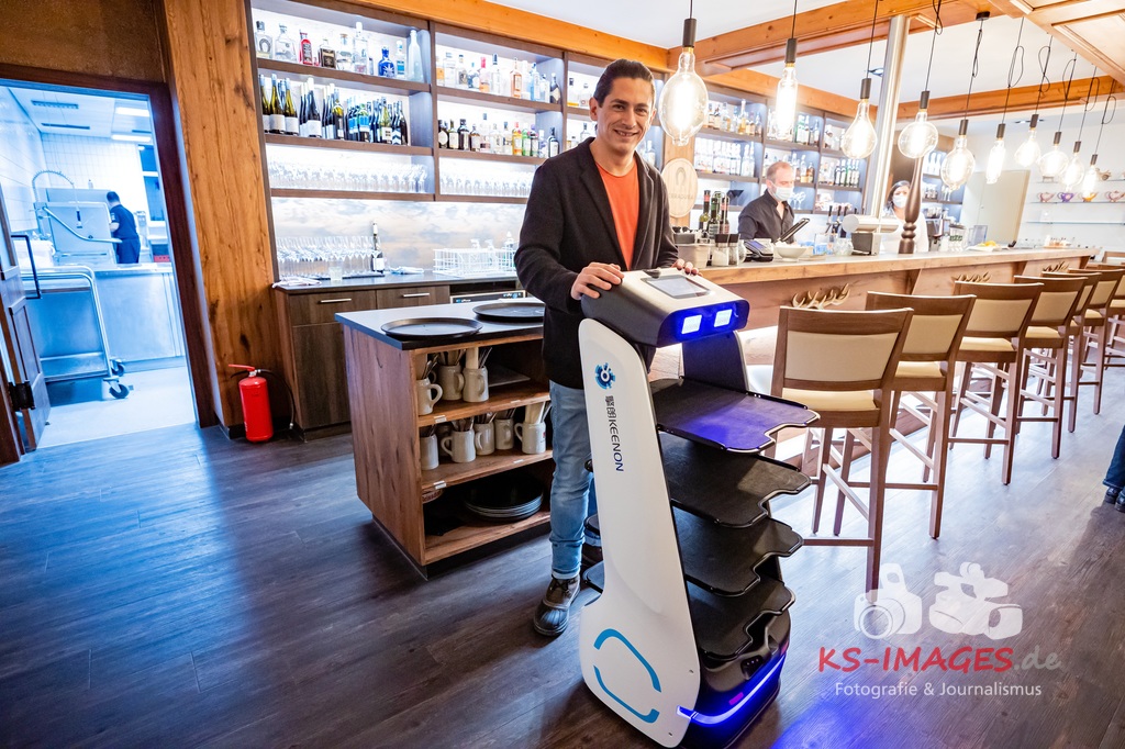 Der intelligente Transportroboter hat Inhaber Mario Diaz zur Entlastung seines Teams geholt. Dieser kann auch viel mehr Tragen als seine menschlichen Kollegen. Er umfährt Tische sowie Hindernisse und stoppt, wenn eine Person oder ein Tier sich vor Ihm bewegt. Dieter ist ein Gästemagnet, es werden Fotos gemacht, sogar Selfies mit Ihm. Eltern bestellten auch noch extra ein Eis für die Kinder, dass der Roboter wieder an den Tisch kommt. Mario Diaz ist nach knapp 3 Wochen sehr zufrieden, das Konzept wird von den Gästen sehr gut angenommen, es ändere sich ja nicht viel, der Menschliche Kellner bedient weiterhin die Gäste an den Tischen.