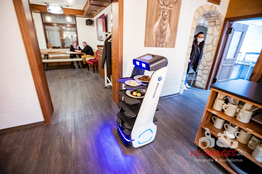 0 STEINMHEIM AN DER MURR: Die Mitarbeiter im Restaurant Forsthof haben einen neuen Kollegen, der bald auch schwäbisch schwätzen kann (es wird auf ein Update gewartet). Er wurde auf den Namen Dieter getauft und ist ein Keenon Lieferroboter T5.