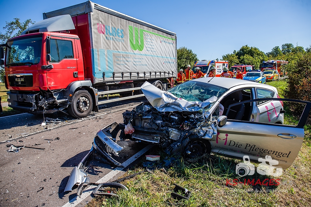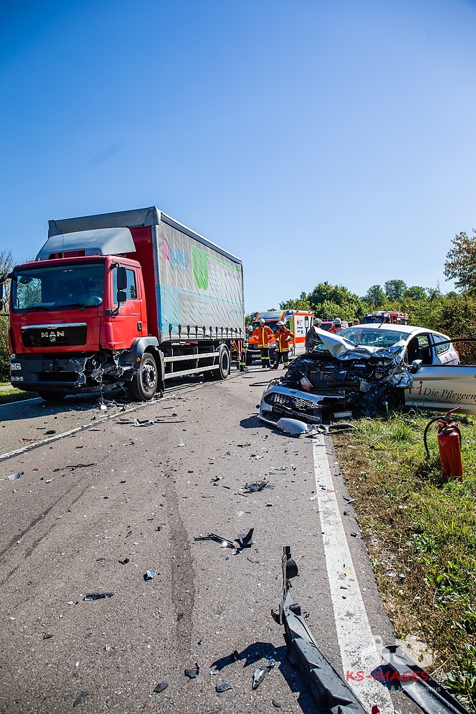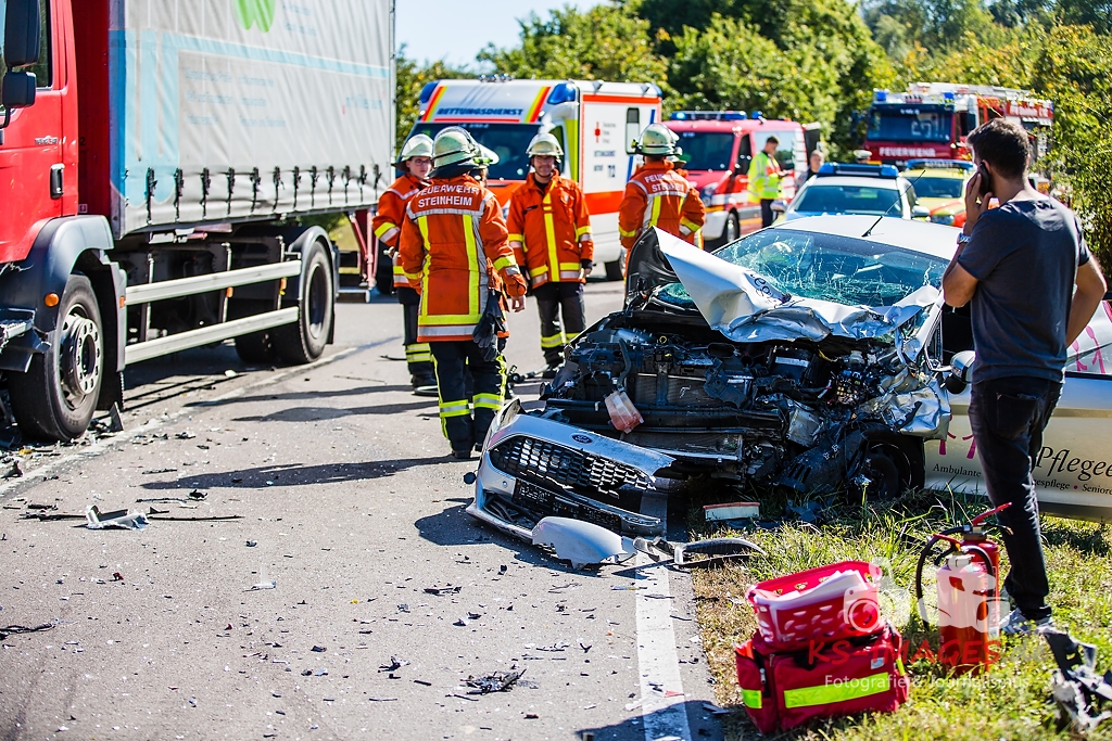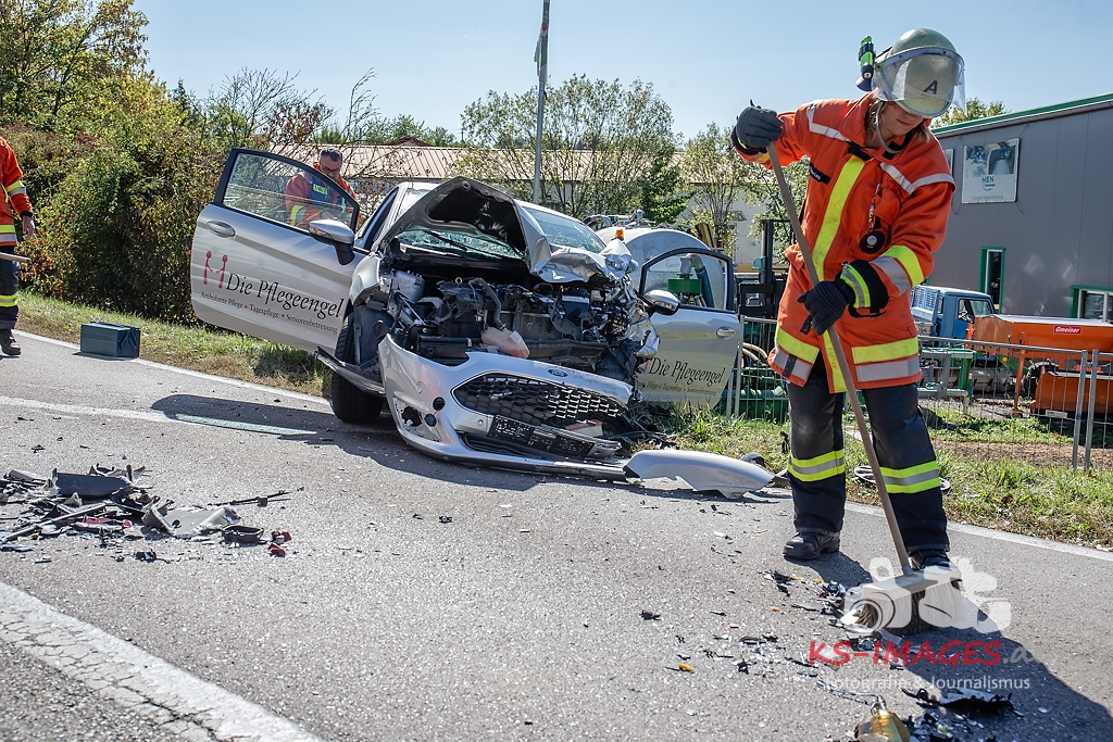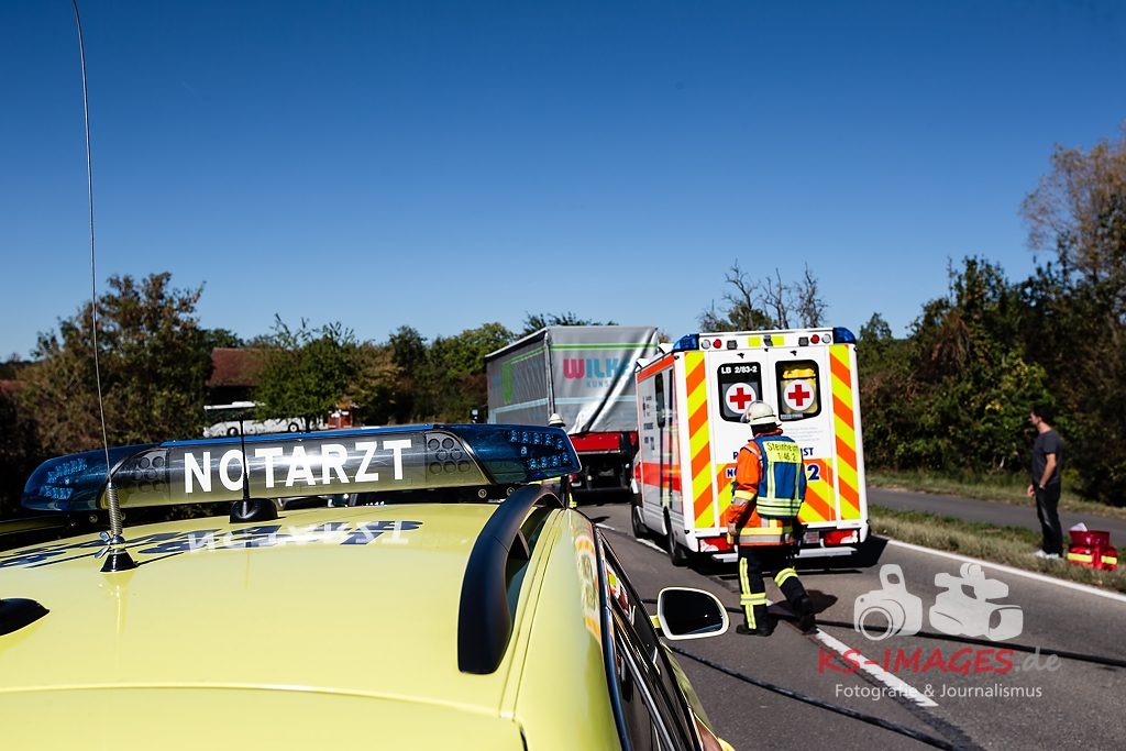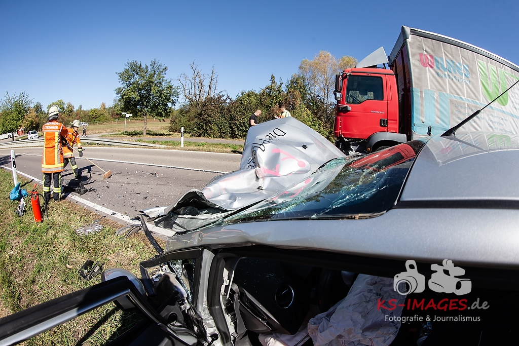 0 STEINHEIM AN DER MURR: Eine 42-Jährige befuhr am Donnerstag gegen 12:25 Uhr mit einem Ford die Kreisstraße 1610 von Höpfigheim in Richtung Steinheim an der Murr. Vermutlich aufgrund von Unachtsamkeit kam die 42-Jährige in einer lang gezogenen Rechtskurve zu weit nach links und stieß mit einem entgegenkommenden Lkw eines 27-Jährigen zusammen. Durch den Zusammenstoß wurde die 42-Jährige leicht verletzt und musste anschließend vom Rettungsdienst in ein Krankenhaus gebracht werden. Der entstandene Sachschaden wurde auf rund 20.000 Euro geschätzt. Im Zuge des Unfalls wurde die Fahrbahn verschmutzt. Alarmierte Kräfte der Freiwilligen Feuerwehr Steinheim, die mit fünf Fahrzeugen und 30 Wehrleuten vor Ort war, kümmerten sich in der Folge um die Fahrbahnreinigung.