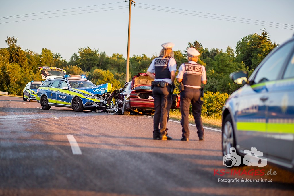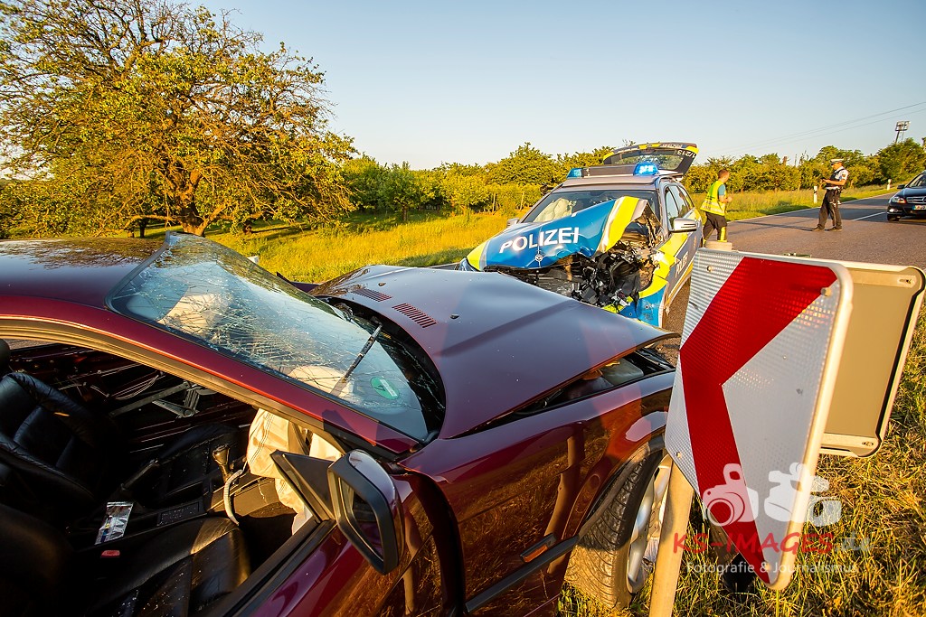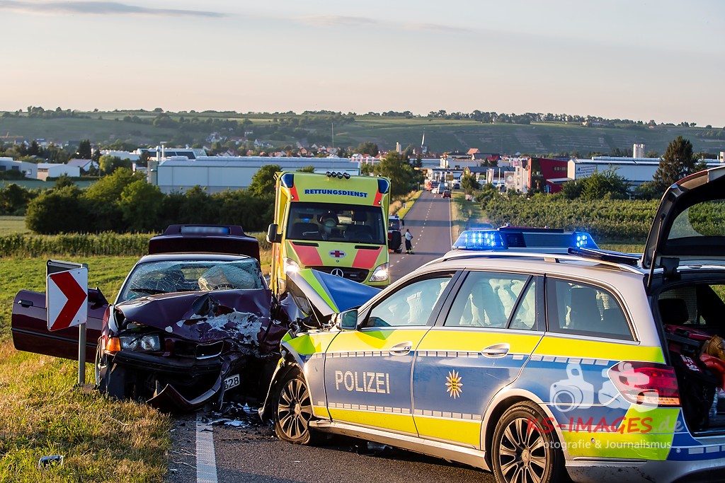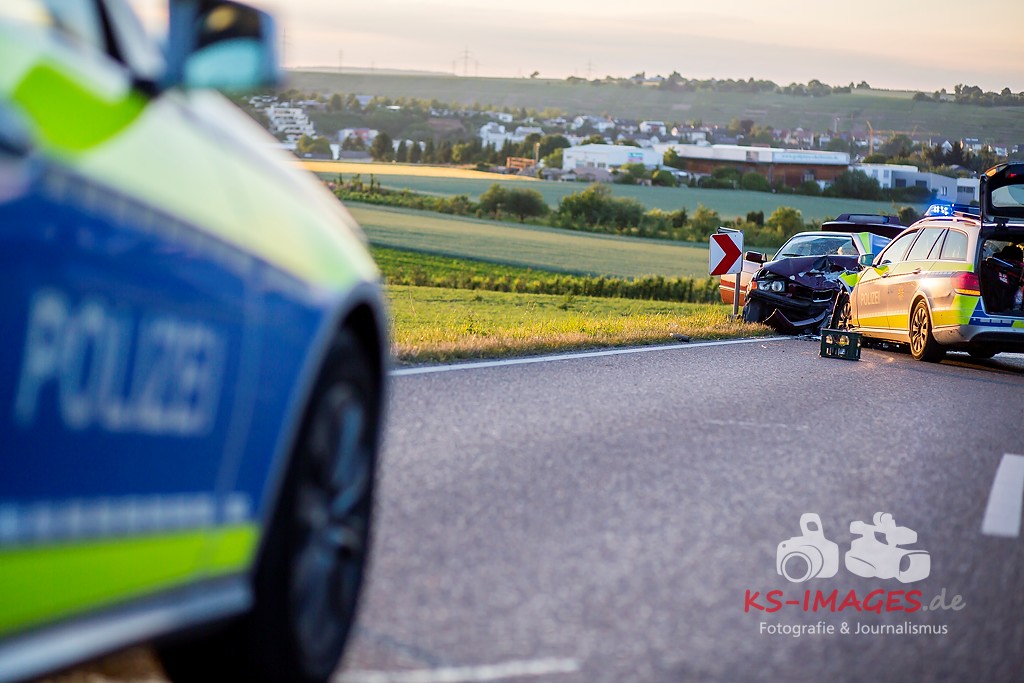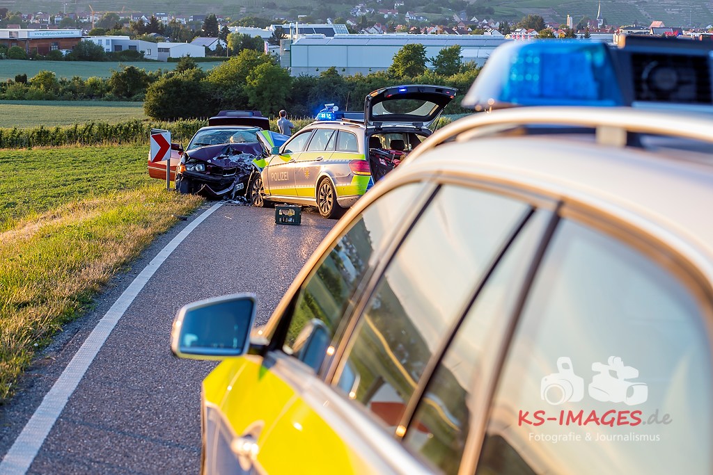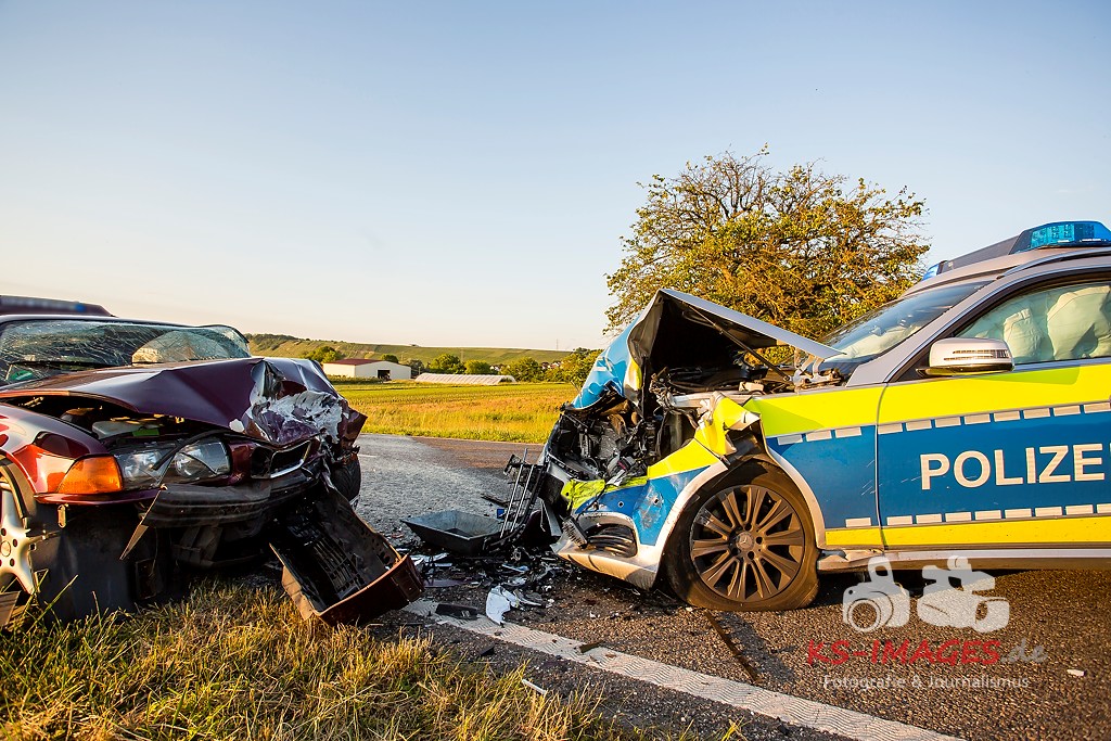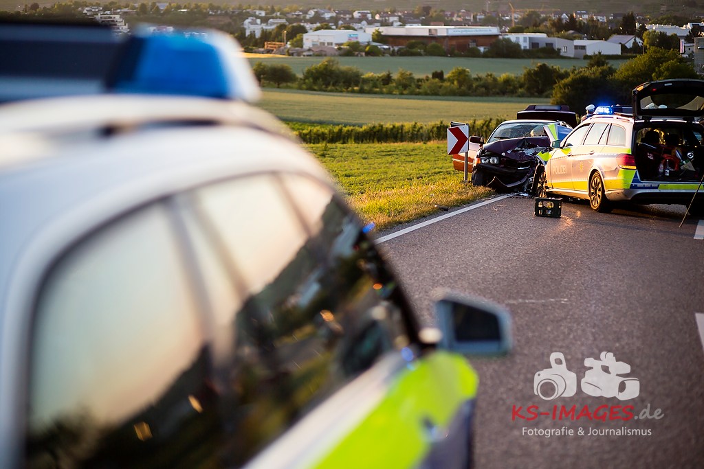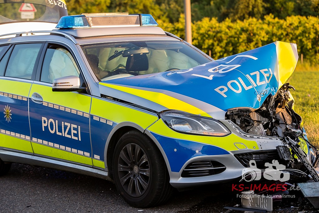 0 KIRCHHEIM AM NECKAR: Bei der Anfahrt zu einem Verkehrsunfall mit Personenschaden auf der B27 bei Kirchheim kam es am Mittwochabend zu einem Unfall, an welchem ein Streifenwagen des Polizeirevier Bietigheim beteiligt war. Der Streifenwagen war auf der B27 von Walheim her kommend in Richtung Kirchheim unterwegs und stieß im Begegnungsverkehr mit einem entgegenkommenden BMW zusammen. Bei dem Zusammenstoß wurden die Beifahrerin im Streifenwagen sowie die beiden Insassen des BMW verletzt. Alle wurden mit dem Rettungsdienst in ein Krankenhaus verbracht. Die Polizeibeamtin war leicht verletzt und konnte nach ärztlicher Versorgung ihren Dienst wieder aufnehmen. Der 25-jährige BMW Fahrer erlitt eine Fraktur am Bein und wurde stationär aufgenommen. Der 27-jährige Beifahrer wurde leicht verletzt. Beide Fahrzeuge waren nicht mehr fahrbereit und mussten abgeschleppt werden. Am BMW entstand Totalschaden in Höhe von ca. 5.000 Euro. Der Sachschaden am Streifenwagen beläuft sich auf ca. 65.000 Euro. Für die Dauer der Unfallaufnahme war die B27 zwischen Kirchheim und Walheim von 19:30 bis 22:30 Uhr voll gesperrt.