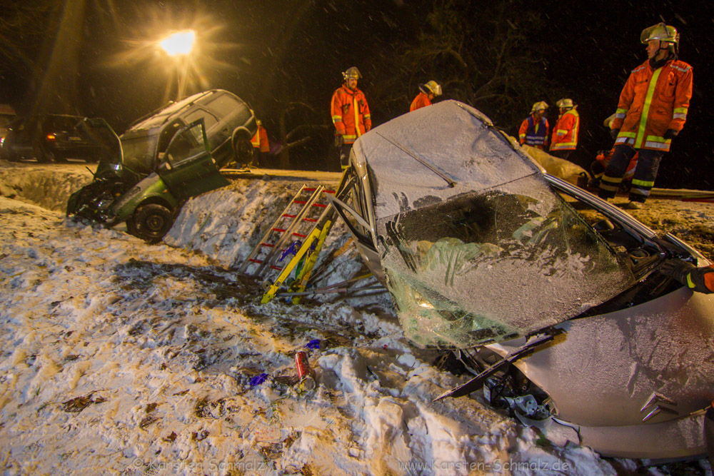 Bei dem Aufprall wurden der 26-Jährige und sein 21-jähriger Beifahrer leicht verletzt, die 30-Jährige wurde in ihrem Auto eingeklemmt und musste von der Feuerwehr aus dem Wrack befreit werden. Die Frau erlitt lebensbedrohliche Verletzungen. Den Sachschaden schätzt die Polizei auf zirka 12.000 Euro. Zur Klärung des Unfallhergangs wurde ein Sachverständiger hinzugezogen.