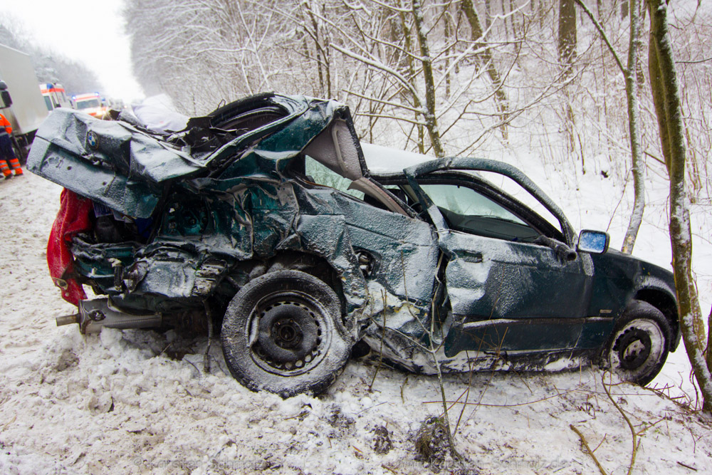Schwere Verletzungen erlitt der 26 Jahre alte Fahrer eines BMW am Donnerstag kurz nach 9:00 Uhr, als er auf der Landesstraße 1115 von Backnang kommend in Fahrtrichtung Mundelsheim trotz schneeglatter Fahrbahn einen Kleintransporter und den davor fahrenden Lkw überholte. Beim Wiedereinscheren auf seine Fahrbahn drehte er sich zunächst nach rechts und anschließend nach links, so dass er mit der hinteren rechten Seite gegen die Frontpartie des entgegen kommenden Lkw mit Anhänger fuhr und nach links von der Fahrbahn abkam. Er wurde mit dem Rettungsdienst in ein Krankenhaus gebracht. Die Landesstraße 1115 wurde zwischen Hardtwaldkreuzung und Abfahrt Karlshof bis 10.45 Uhr gesperrt. Insgesamt entstand ein Sachschaden in Höhe von etwa 12.000 Euro. Der BMW war nicht mehr fahrbereit und musste abgeschleppt werden. Einsatzkräfte der Feuerwehr waren vor Ort.