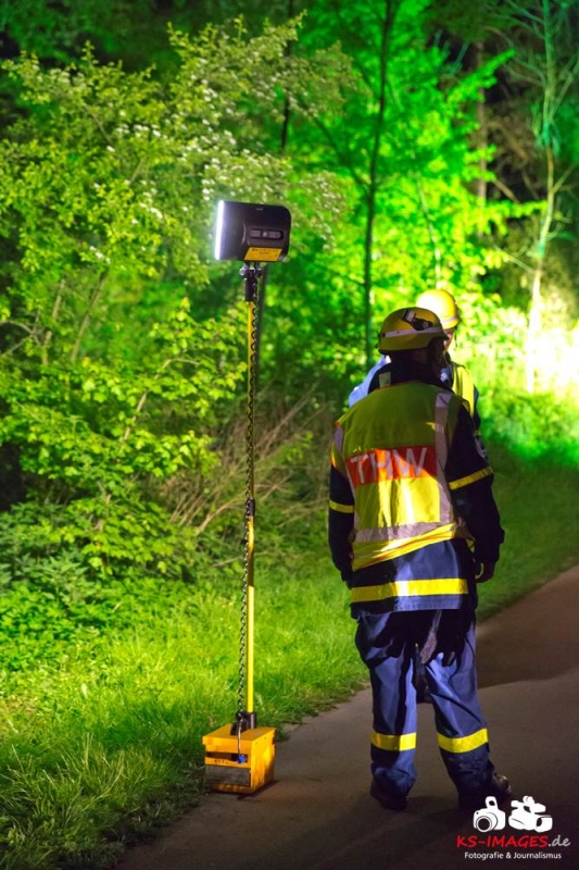 THW Einsatz Backnang TalstrasseDurch eine Streife des Polizeireviers Backnang wurden am Mittwochmorgen kurz nach 3 Uhr im Bereich Grabenstraße / Abzweigung Fritz-Munz-Weg zwei Personen festgestellt, die beim Näherkommen des Polizeifahrzeuges flüchteten. Die Beamten nahmen sofort die Verfolgung der Beiden auf, die im Bereich des Fritz-Munz-Wegs eine Tasche wegwarfen und anschließend über die Talstraße, den Mühlkanal bei den Bacsalmas-Anlagen Richtung Hagenbach weiterliefen. Durch die Polizisten können die Unbekannten wohl noch am Steilhang wahrgenommen werden, ehe sie die beiden aus den Augen verloren. Lediglich durch Geräusche erhärtete sich der Verdacht, dass sich die beiden Männer dort versteckten. Trotz sofortiger intensiver Fahndungsmaßnahmen, bei denen weitere Beamte der Polizeireviere Winnenden, Schorndorf, Fellbach und Schwäbisch Hall eingesetzt wurden, konnten die Unbekannten nicht aufgefunden werden. Die weitere Suche, an welcher sich auch ein Polizeihubschrauber und das THW zum Ausleuchten des Geländes beteiligten, blieb erfolglos. In der weggeworfenen Tasche fanden die Beamten zwei Motorsägen, die evtl. von einem zuvor begangenen Diebstahl stammen könnten.