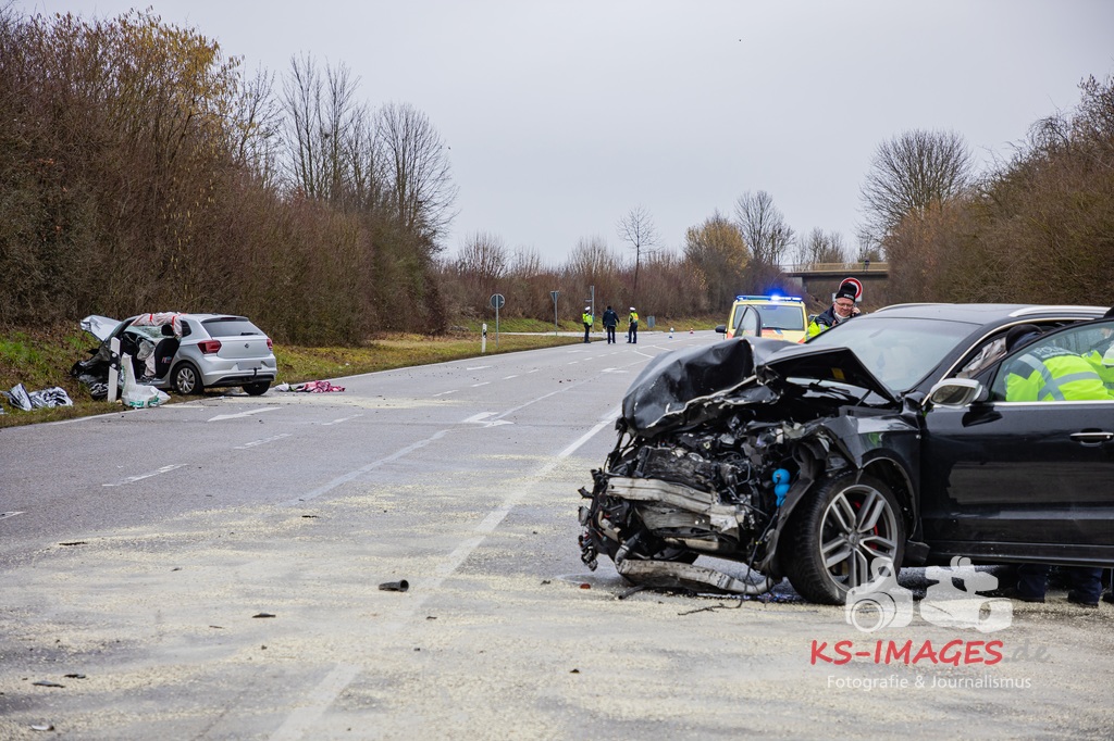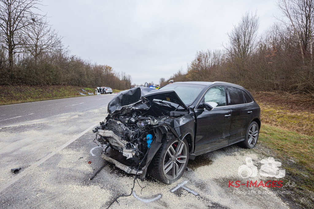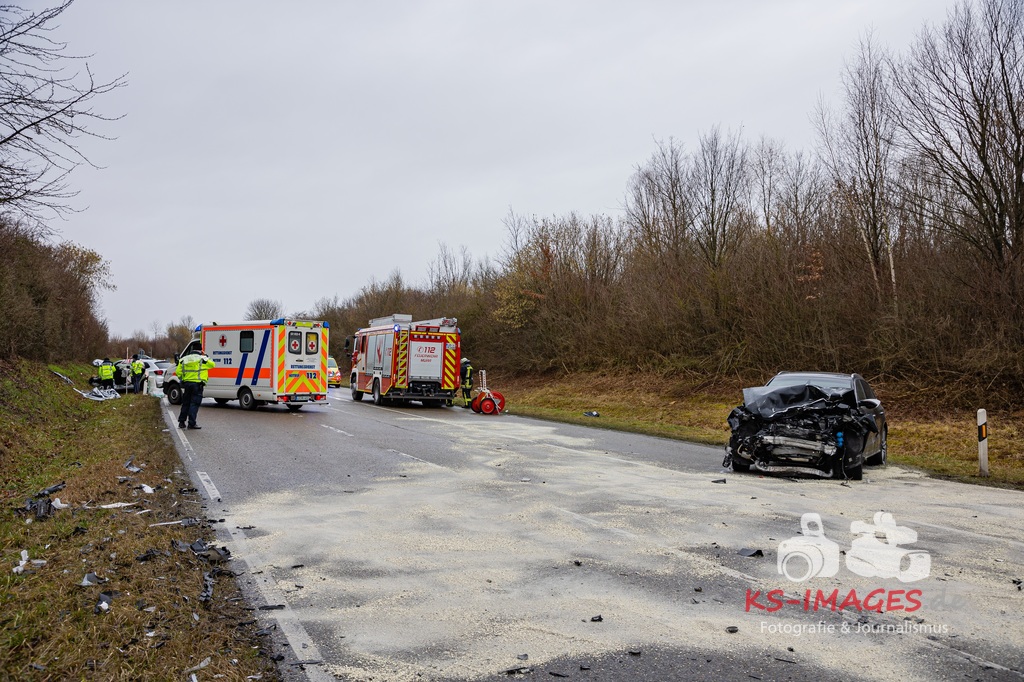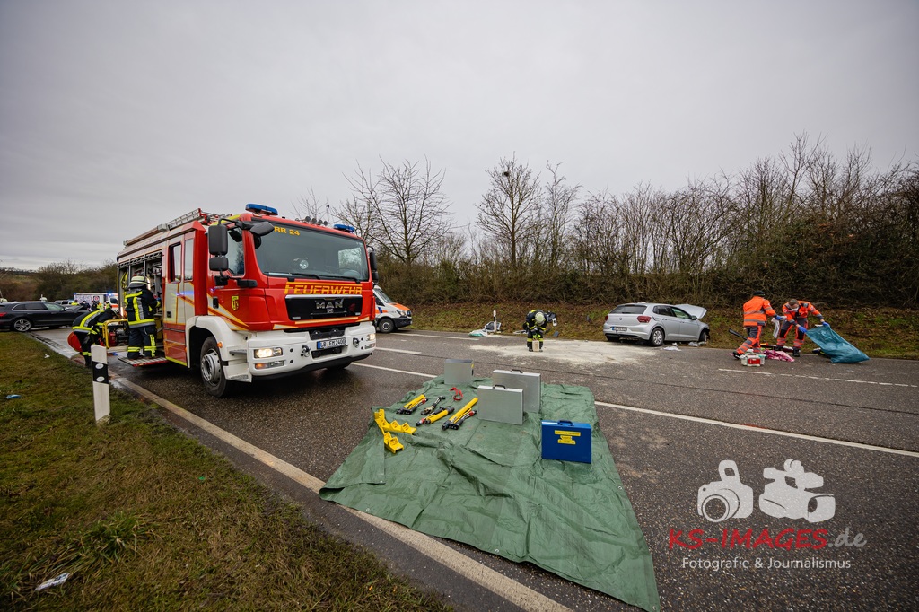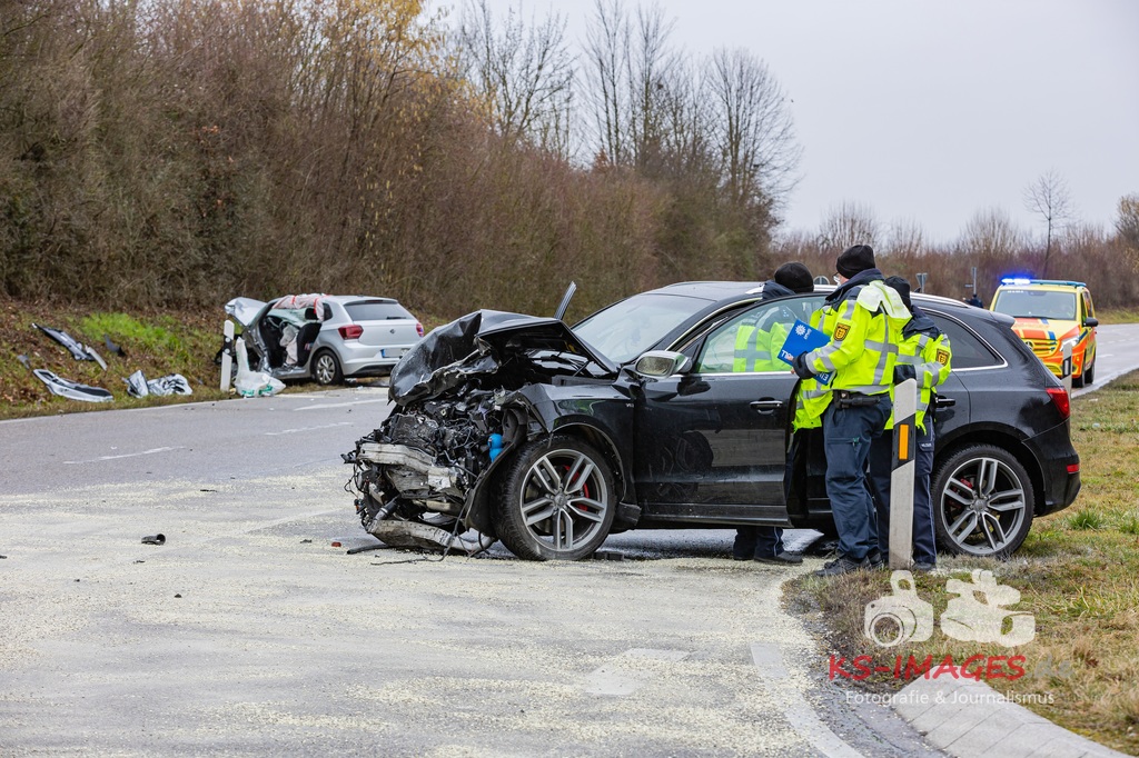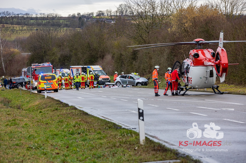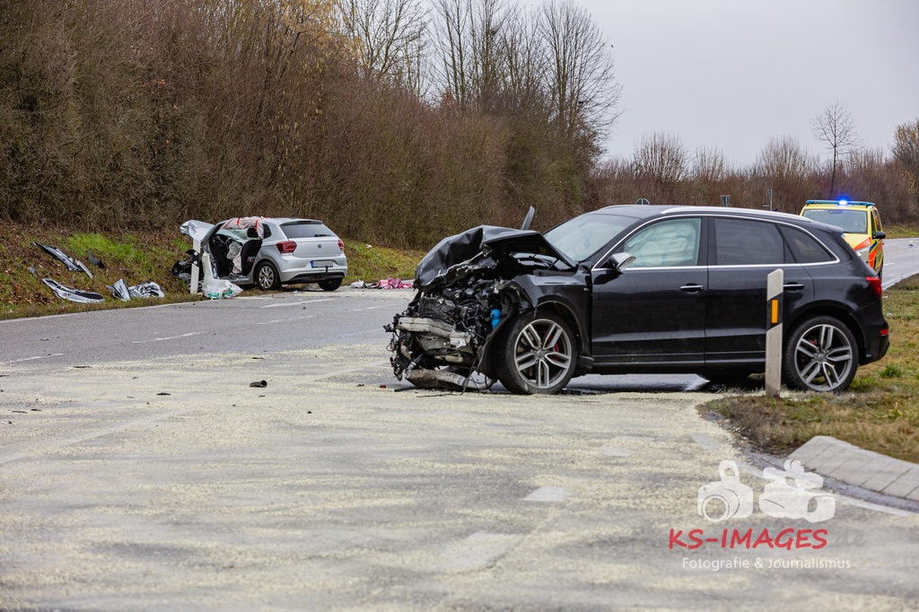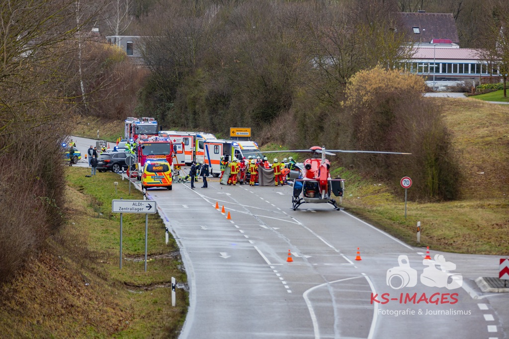 Es kam zur Kollision im Einmündungsbereich. Der 32-Jährige wurde hierbei schwer verletzt und musste mit einem Rettungswagen in ein Krankenhaus gebracht werden. Der 76-jährige VW-Fahrer wurde durch den Unfall ebenfalls schwer verletzt und in seinem Fahrzeug eingeklemmt. Er musste von der Feuerwehr geborgen werden und wurde anschließend in ein Krankenhaus gebracht. Die 74 Jahre alte Beifahrerin im VW wurde an der Unfallstelle von Rettungskräften reanimiert und mit dem Rettungshubschrauber in ein Krankenhaus geflogen. An den Fahrzeugen entstand ein Gesamtschaden in Höhe von rund 25.000 Euro. Die Landesstraße 1100 ist noch bis voraussichtlich 15 Uhr für die Unfallaufnahme und Straßenreinigungsmaßnahmen gesperrt. Zur detaillierten Ermittlung des Unfallhergangs wurde auf Anordnung der Staatsanwaltschaft Heilbronn ein Sachverständiger hinzugezogen und kam an die Unfallörtlichkeit. Die Polizei war mit insgesamt acht Streifenbesatzungen vor Ort. Weiter wurde der Einsatz durch drei Rettungswagenbesatzungen, zwei Notärzten, einem Rettungshubschrauber sowie der Feuerwehr, die mit drei Fahrzeugen und 25 Wehrleuten im Einsatz war, unterstützt.