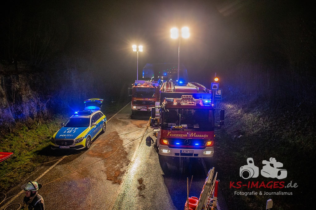 Die L1100 war für die Dauer der Unfallaufnahme sowie der anschließenden Bergungs- und Reinigungsmaßnahmen bis Samstag, 02.00 Uhr, voll gesperrt. Die Feuerwehren Murr und Marbach waren mit insgesamt sechs Fahrzeugen und 36 Wehrleuten, der Rettungsdienst mit sieben Fahrzeugen und 16 Helfern im Einsatz. Seitens der Polizei waren sieben Streifenwagenbesatzungen sowie ein Polizeihubschrauber eingebunden. Des Weiteren wurde ein Unfallsachverständiger mit der Rekonstruktion des Unfallhergangs beauftragt.