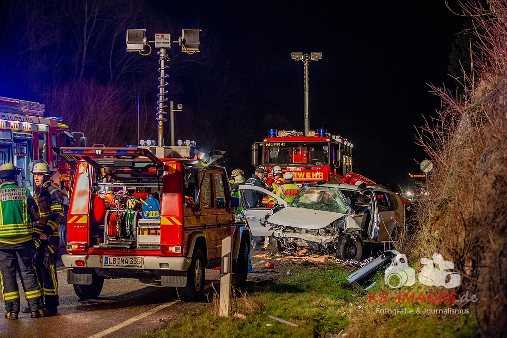 MURR: Am Freitag, 01.03.2019, kurz nach 19.00 Uhr, befuhr die 19-jährige Fahrerin eines 3er BMW mit ihrer ebenfalls 19-jährigen Beifahrerin die L1100 von Steinheim an der Murr kommend in Richtung Marbach am Neckar. Nach jetzigem Kenntnisstand geriet sie aus bislang ungeklärter Ursache nach links in den Gegenverkehr.