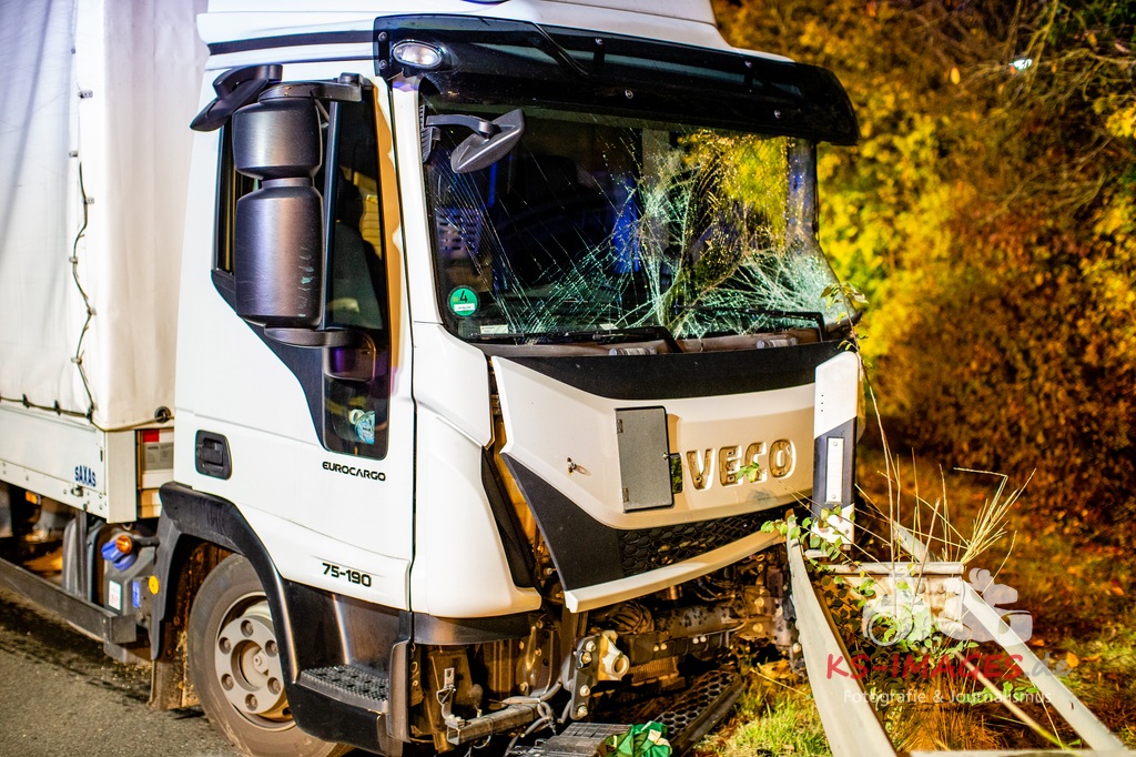 0 SCHWIEBERDINGEN: Am Donnerstag befuhr der 60-jährige Fahrer eines Lkw gegen 11:25 Uhr die B10 von Vaihingen in Fahrtrichtung Stuttgart. Etwa 150 Meter vor der Abfahrt Schwieberdingen-West erkannte er ein Stauende zu spät, zog seinen Lkw nach rechts, kam von der Fahrbahn ab und beschädigte mehrere Sträucher neben der Fahrbahn. Am Lkw wurde die Ölwanne aufgerissen und es liefen etwa 7-8 Liter Öl aus. Im Anschluss kam er mit seinem Lkw neben der Fahrbahn zum Stillstand.