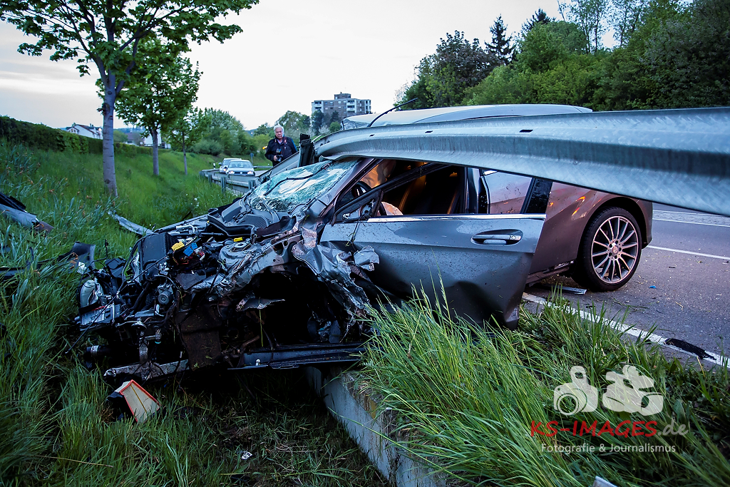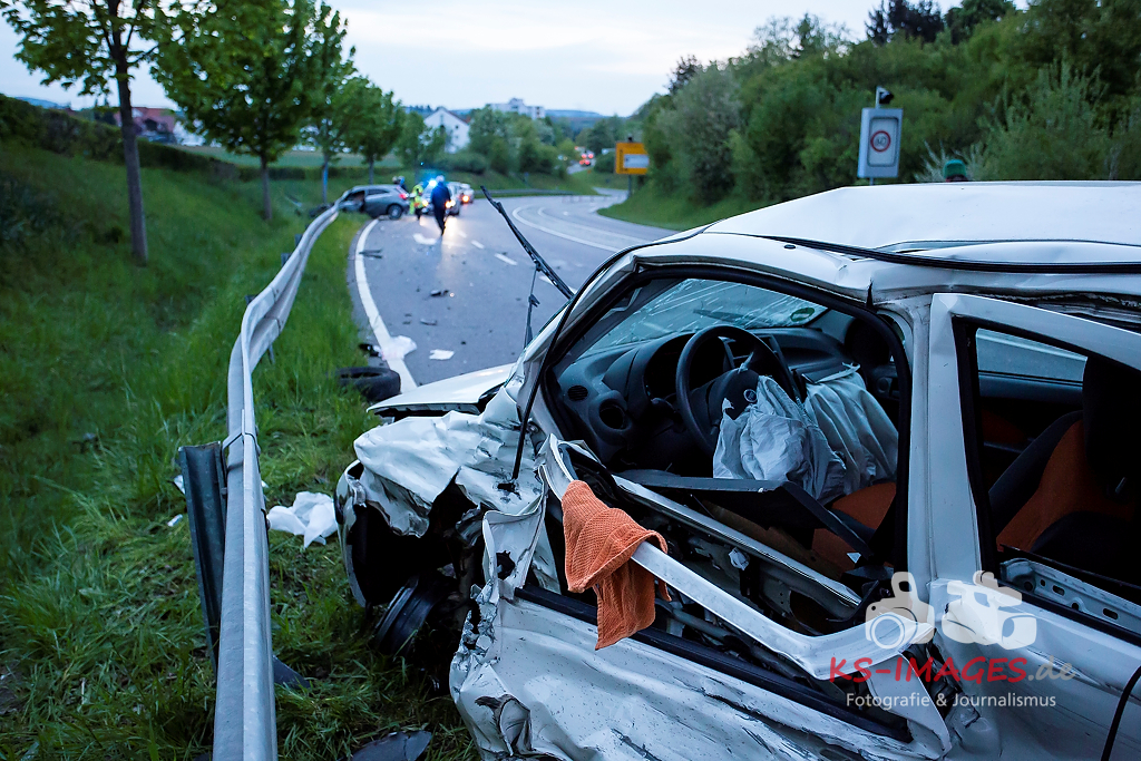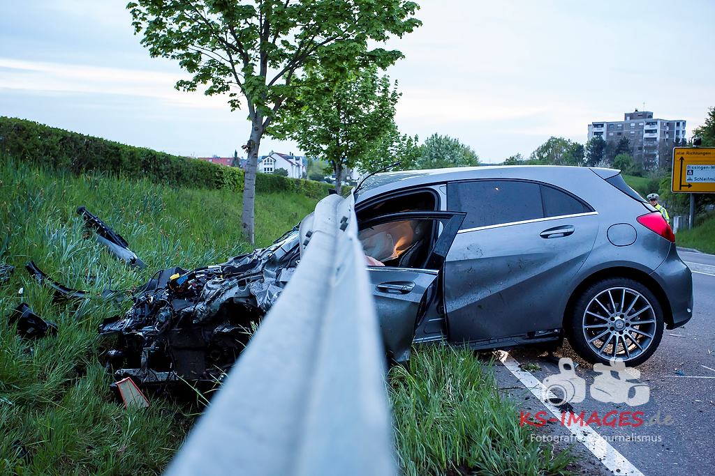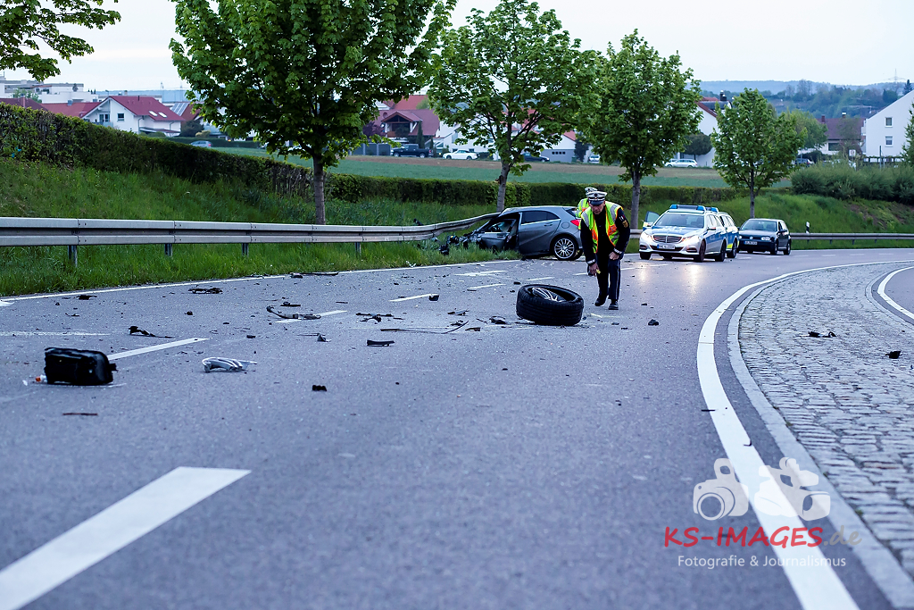 Fotostrecke: Nach Frontalzusammenstoß unter die Leitplanke geschleudert L1110 Bietigheim Bissingen Höhe Grotztunnel 30.04.2015