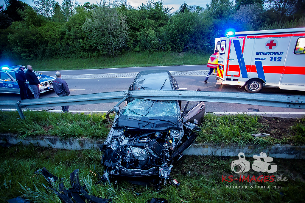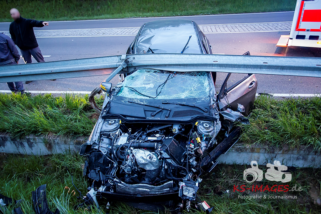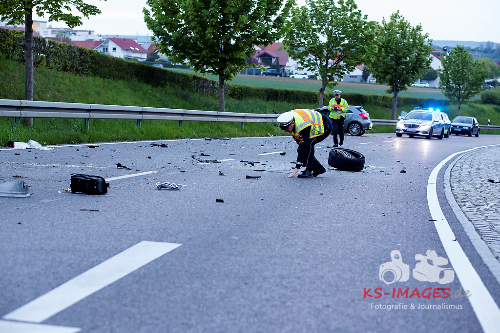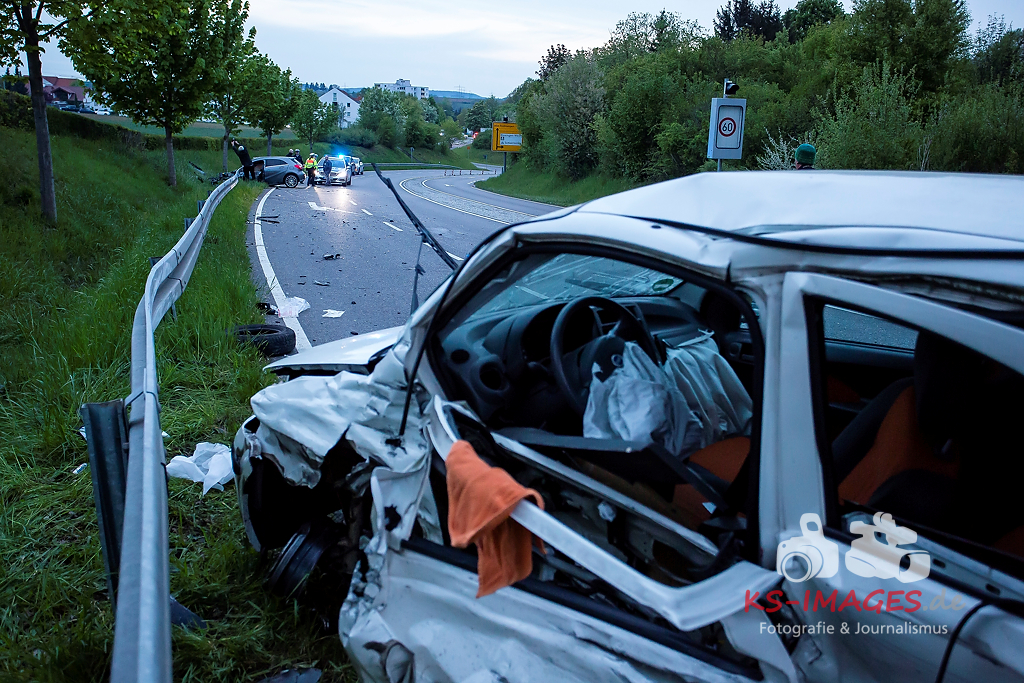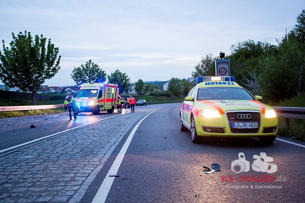 Fotostrecke: Nach Frontalzusammenstoß unter die Leitplanke geschleudert L1110 Bietigheim Bissingen Höhe Grotztunnel 30.04.2015