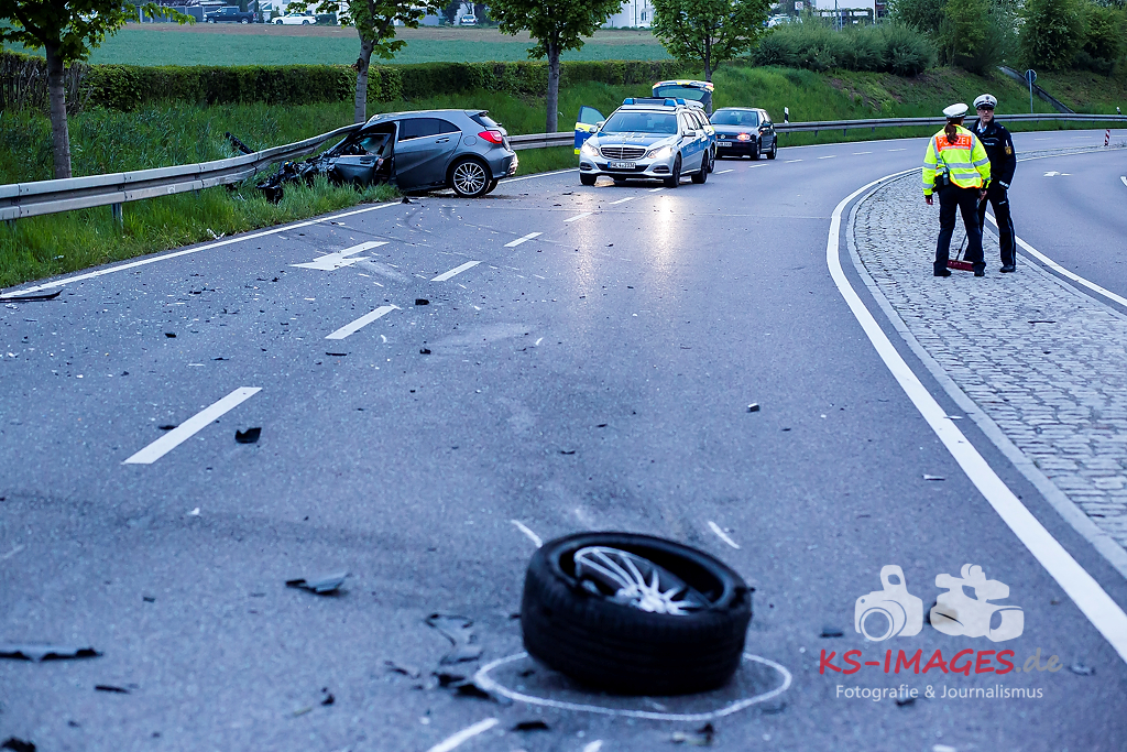 Ludwigsburg – Am Donnerstagmorgen, gegen 05.30 Uhr, ereignete sich auf der Landesstraße 1110 in Fahrtrichtung Bietigheim-Bissingen kurz vor dem Grotztunnel ein Unfall, der eine schwer verletzte Person und einen Sachschaden über 26.500 Euro forderte. Ein 29 Jahre alter Mercedes-Lenker kam aus bislang ungeklärter Ursache in einer leichten Rechtskurve auf die linke Spur der Gegenfahrbahn, worauf er dort mit dem Fiat eines 18-Jährigen zusammen stieß. Durch die Wucht des Aufpralls wurde das linke Vorderrad des Mercedes abgerissen. Anschließend schleuderte der Wagen über die Gegenfahrbahn und verkeilte sich mit der Front unter der Leitplanke. Der Fiat kam nach rechts von der Fahrbahn ab und prallte ebenfalls gegen die Leitplanke. Der 18 Jahre alte Lenker des Fiat erlitt schwere Verletzungen und wurde durch den Rettungsdienst in ein Krankenhaus eingeliefert. Nachdem die Freiwillige Feuerwehr Bietigheim, die mit insgesamt 14 Wehrleuten und drei Fahrzeugen am Unfallort eingesetzt war, den Mercedes befreit hatte, musste er abgeschleppt werden. Auch der Fiat war nicht mehr fahrbereit und wurde abgeschleppt. Während die Fahrbahn in Richtung Bietigheim-Bissingen nach einer Sperrung von etwa 15 Minuten wieder frei gegeben werden konnte, blieb die Gegenfahrspur bis gegen 07.15 Uhr gesperrt.