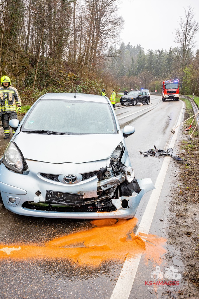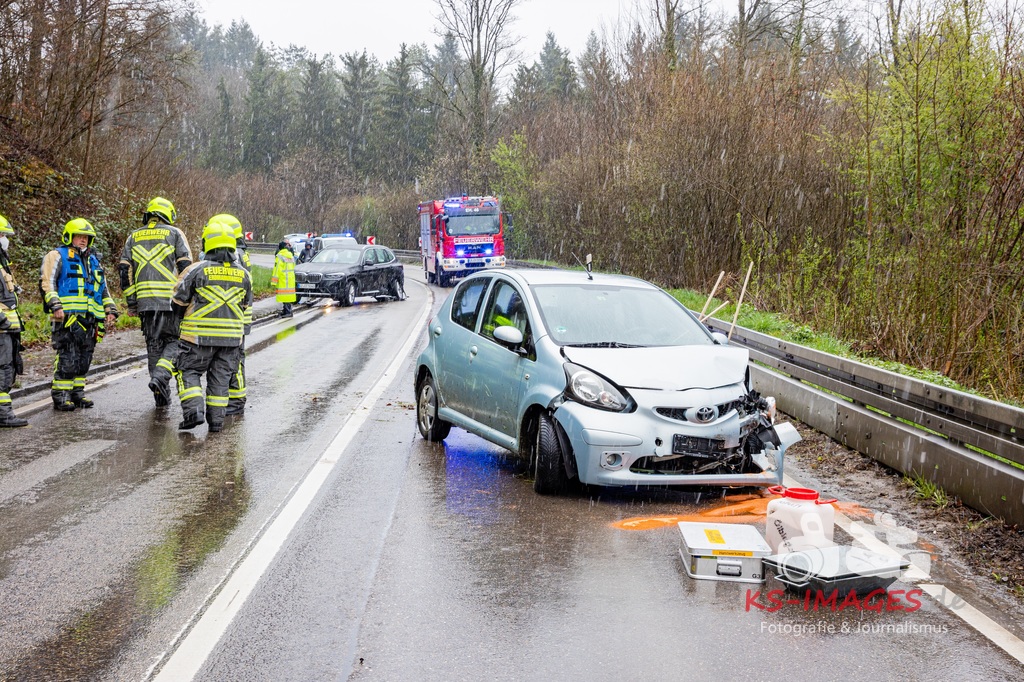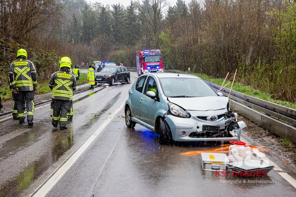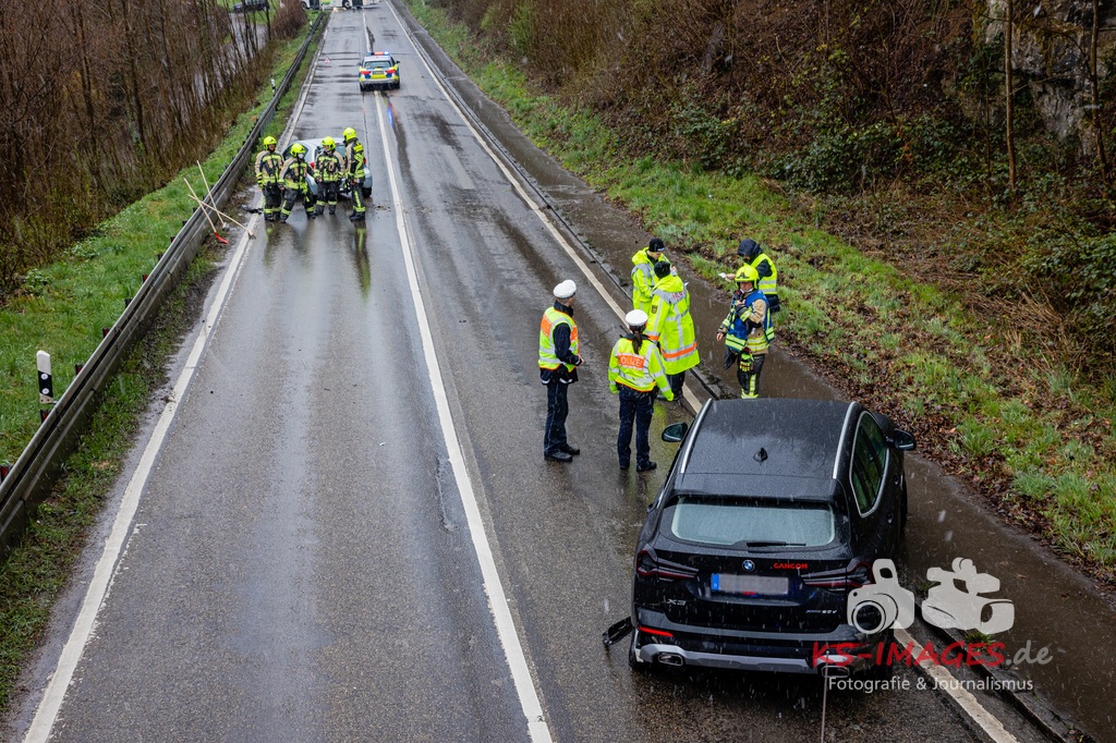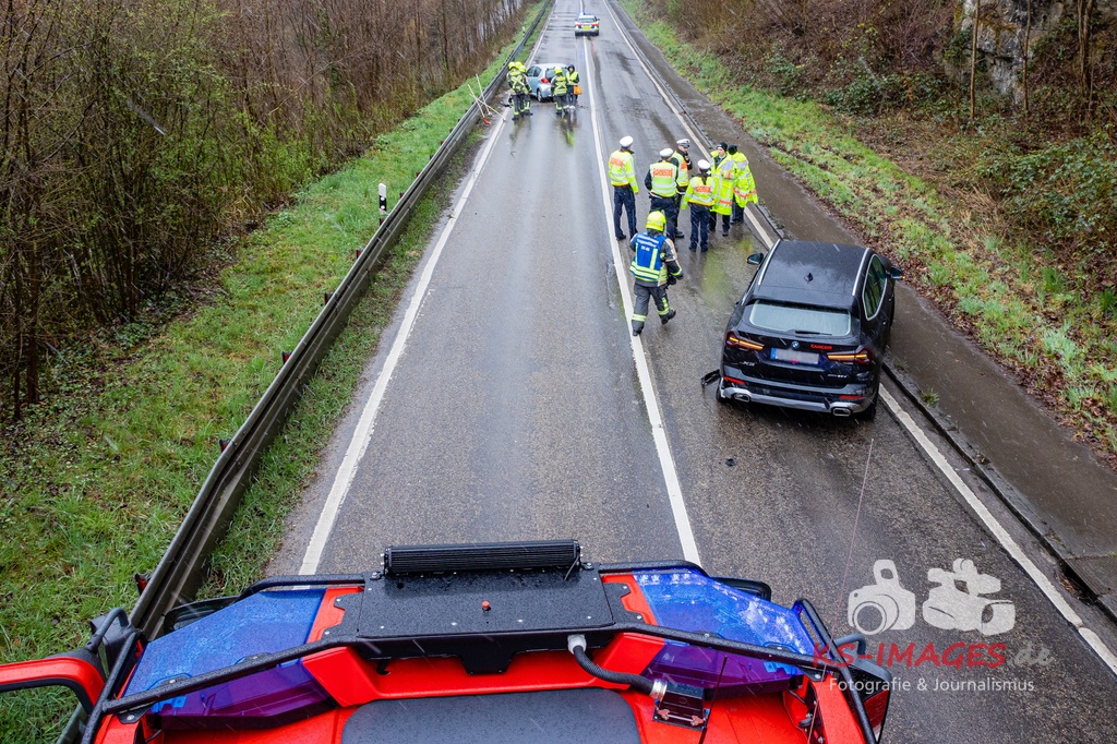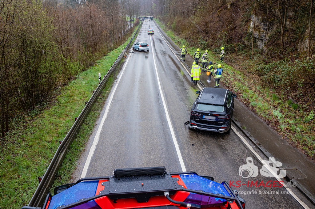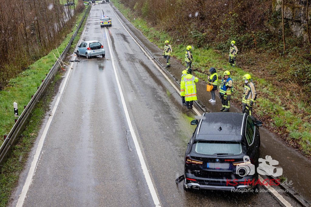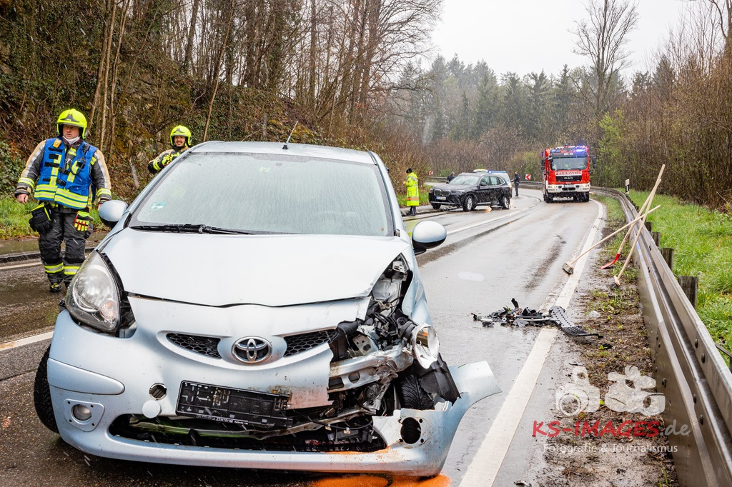 Fotostrecke: Gemarkung Erdmannhausen, L1124 Kreis Ludwigsburg – Verkehrsunfall mit einer leicht verletzten Person zwischen Bugmühle und Schweißbrücke 01.04.2022