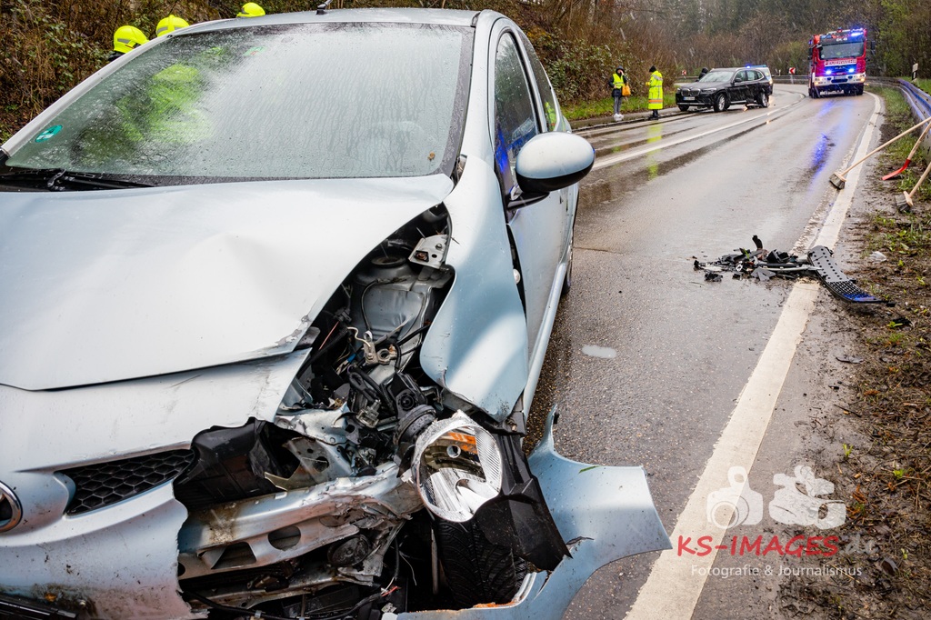 Frontalzusammenstoß zweier Pkw in einem Kurvenbereich - Feuerwehr Erdmannhausen im Einsatz. L1124 bei Marbach aktuell voll gesperrt