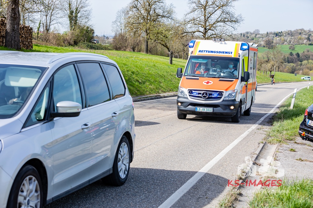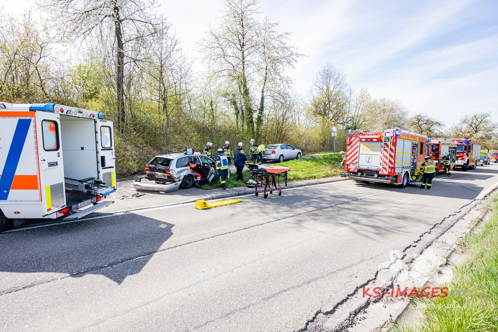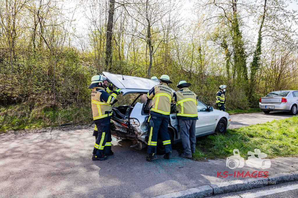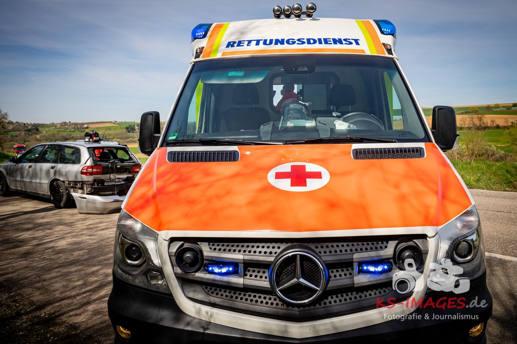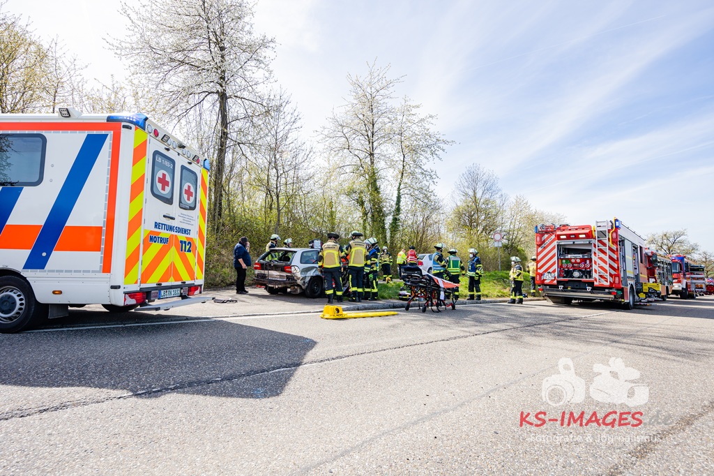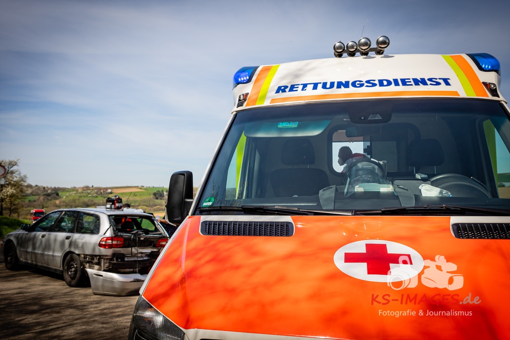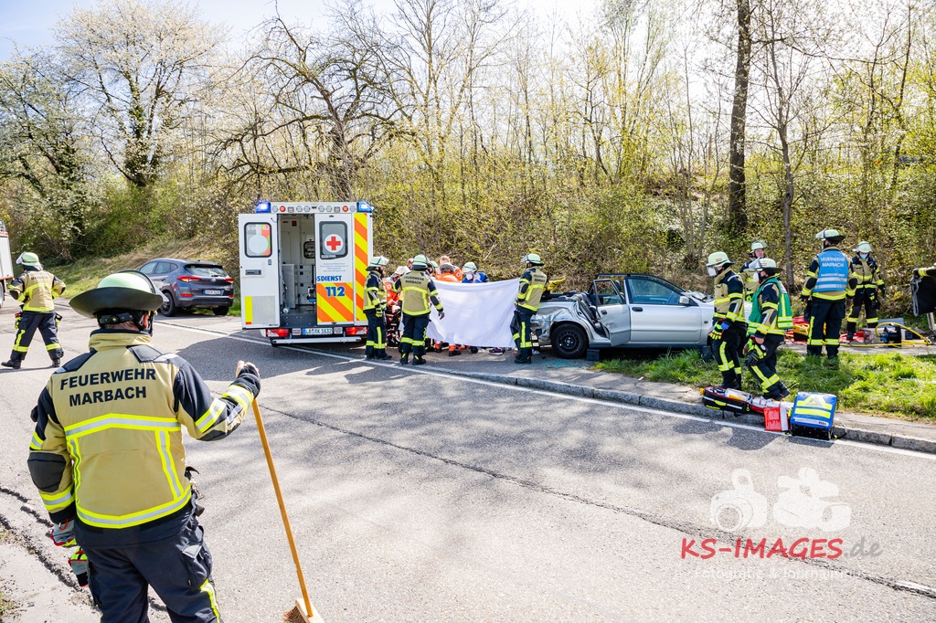 Die hinter ihm fahrende 93-jährige VW-Lenkerin bemerkte dies wohl zu spät und fuhr auf. Der Volvo wurde durch den Aufprall nach links, über die Gegenfahrbahn auf den Feldweg geschleudert. Im Zuge dessen kollidierte der Volvo mit dem Hyundai einer 34 Jahre alten Fahrerin, die in die Gegenrichtung fuhr. Der 65 Jahre alte Volvo-Lenker konnte aufgrund des schweren Verletzungsbildes den PKW nicht verlassen und musste von der Feuerwehr gerettet werden. Diese nahm hierzu das Dach des Fahrzeugs ab. Während diese Maßnahme war die L 1124 komplett gesperrt. Auch die 93-Jährige und die 34 Jahre alte Frau wurden verletzt. Alle drei Personen wurden vom Rettungsdienst in Krankenhäuser gebracht. Der Volvo und der VW waren nicht mehr fahrbereit und mussten abgeschleppt werden. Die Freiwilligen Feuerwehren Marbach am Neckar und Rielingshausen befanden sich mit insgesamt 33 Wehrleuten und fünf Fahrzeugen im Einsatz. Text: Polizeipräsidium Ludwigsburg.
