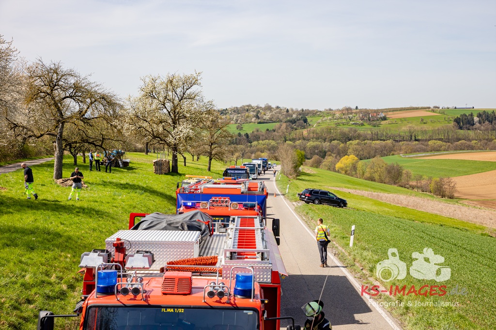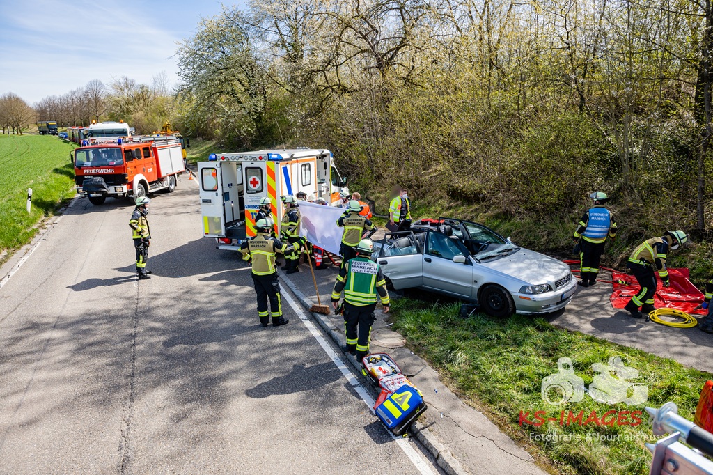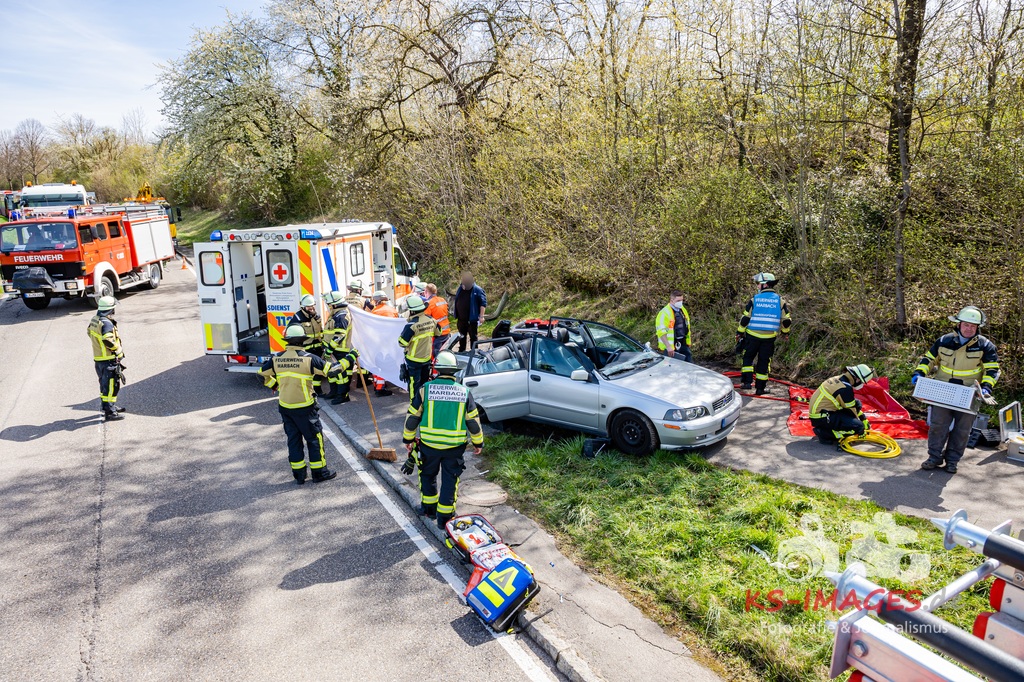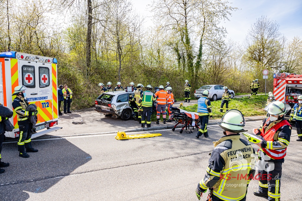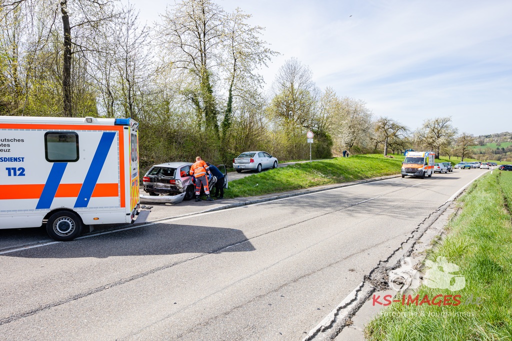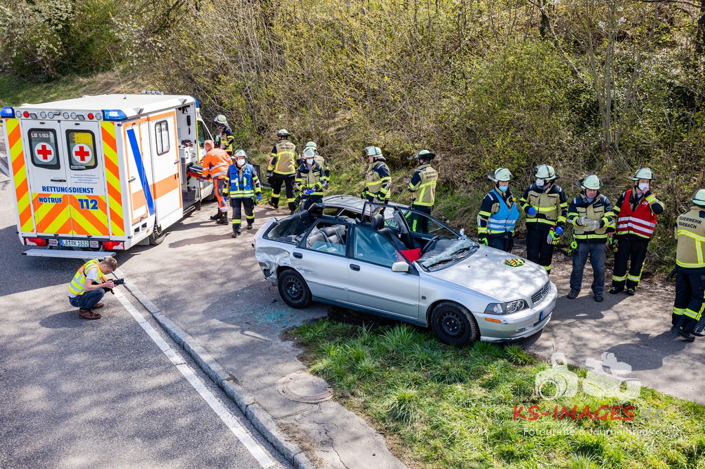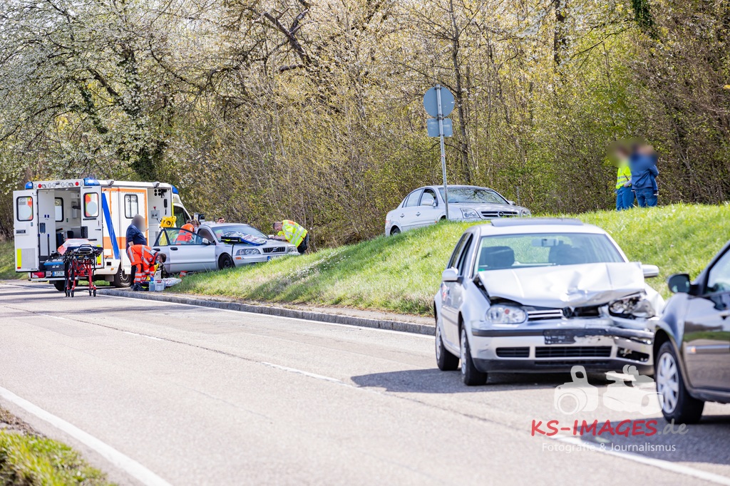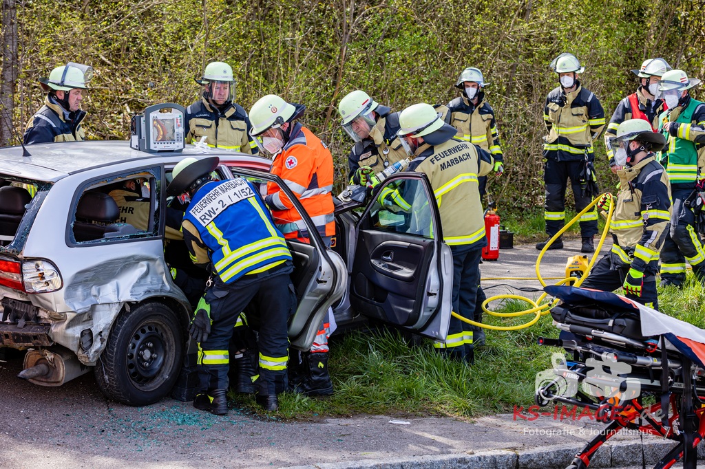 Die hinter ihm fahrende 93-jährige VW-Lenkerin bemerkte dies wohl zu spät und fuhr auf. Der Volvo wurde durch den Aufprall nach links, über die Gegenfahrbahn auf den Feldweg geschleudert. Im Zuge dessen kollidierte der Volvo mit dem Hyundai einer 34 Jahre alten Fahrerin, die in die Gegenrichtung fuhr. Der 65 Jahre alte Volvo-Lenker konnte aufgrund des schweren Verletzungsbildes den PKW nicht verlassen und musste von der Feuerwehr gerettet werden. Diese nahm hierzu das Dach des Fahrzeugs ab. Während diese Maßnahme war die L 1124 komplett gesperrt. Auch die 93-Jährige und die 34 Jahre alte Frau wurden verletzt. Alle drei Personen wurden vom Rettungsdienst in Krankenhäuser gebracht. Der Volvo und der VW waren nicht mehr fahrbereit und mussten abgeschleppt werden. Die Freiwilligen Feuerwehren Marbach am Neckar und Rielingshausen befanden sich mit insgesamt 33 Wehrleuten und fünf Fahrzeugen im Einsatz. Text: Polizeipräsidium Ludwigsburg.