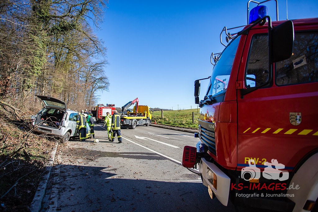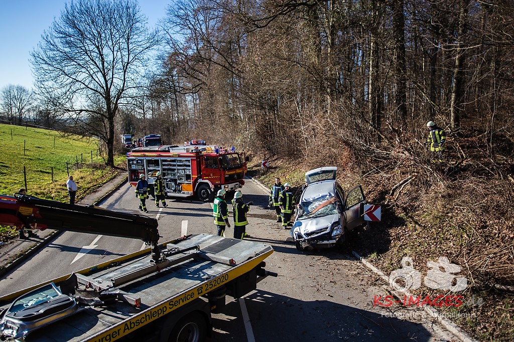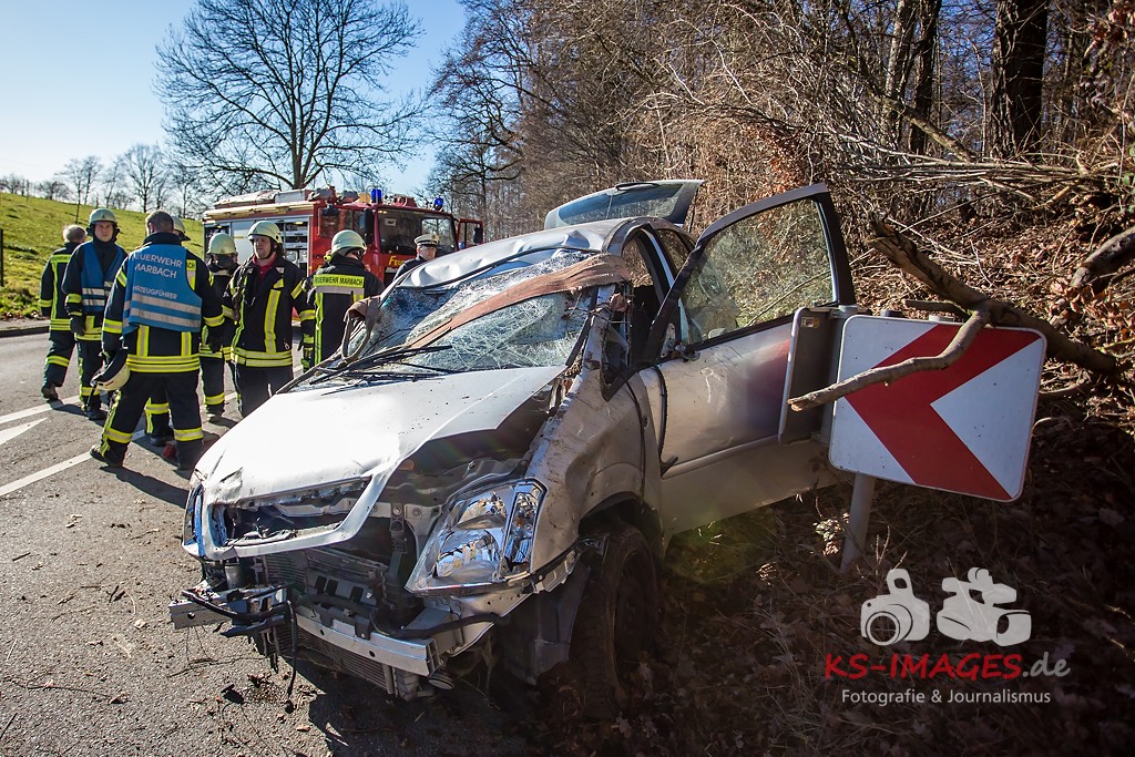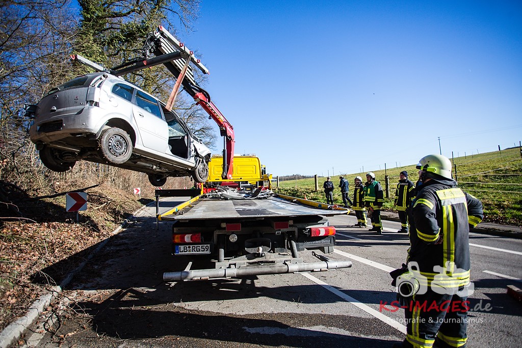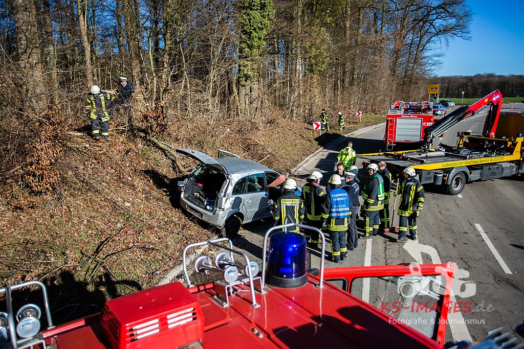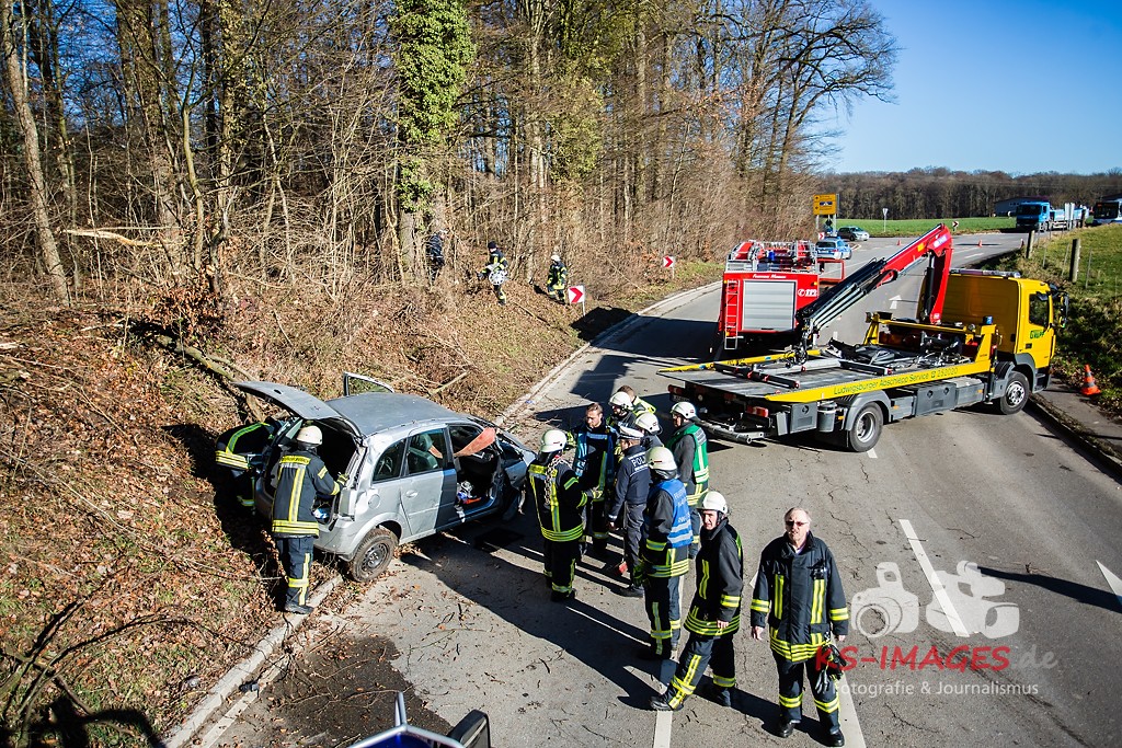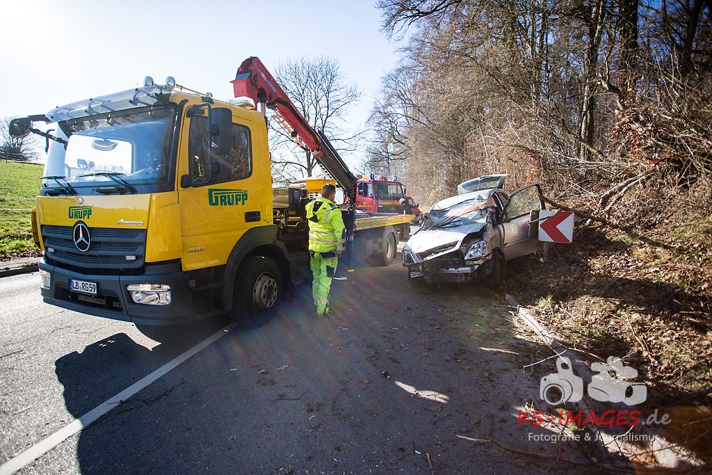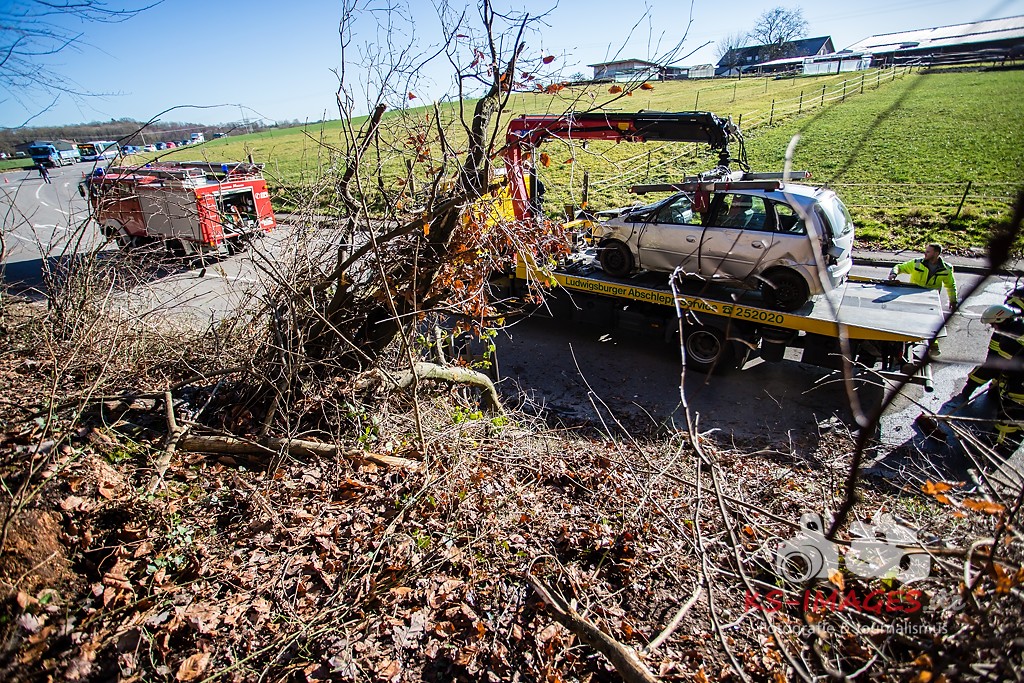 Fotostrecke: Rentnerunfall auf der L1124 Rielingshausen – Fahrer kracht Böschung hinauf und bleibt im Wald hängen 14.01.2016
