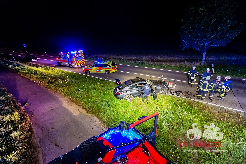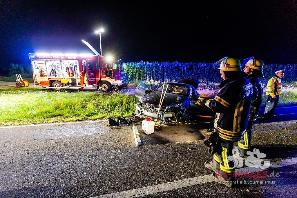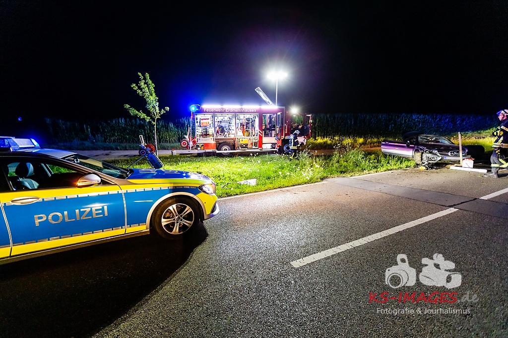 ERDMANNHAUSEN: Aus noch ungeklärter Ursache kam um 03.45 ein 23-jähriger Mercedesfahrer auf der L 1127 zwischen Marbach und Affalterbach von der Fahrbahn ab, prallte gegen mehrere Verkehrszeichen, überschlug sich und kam auf den Rädern wieder zum Stehen. Noch vor dem Eintreffen der Rettungskräfte konnte sich der Fahrer alleine aus dem Fahrzeug befreien. Ein hinzugezogener Rettungswagen verbachte ihn in ein Krankenhaus. Das stark beschädigte Auto musste abgeschleppt werden. Es entstand ein Sachschaden in Höhe von etwa 30.000 Euro.