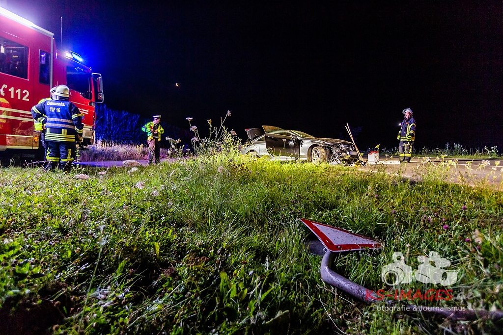 Fotostrecke: Gegen mehrere Verkehrsschilder gekracht und überschlagen L1127 Marbach Richtung Affalterbach Höhe Erdmannhausen 09.07.2018