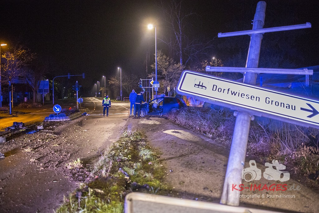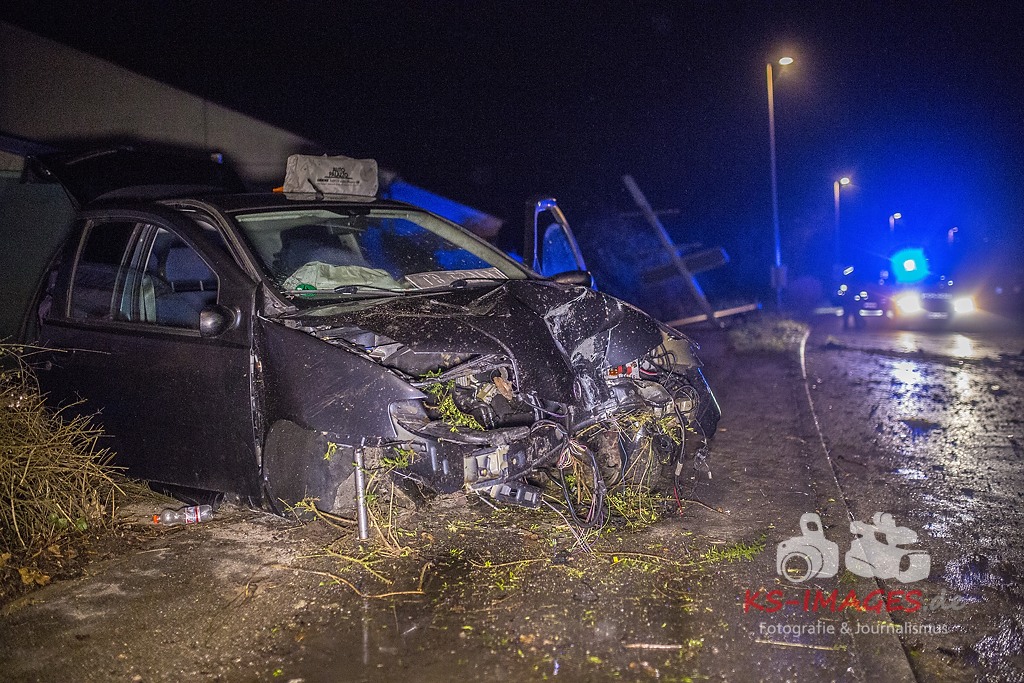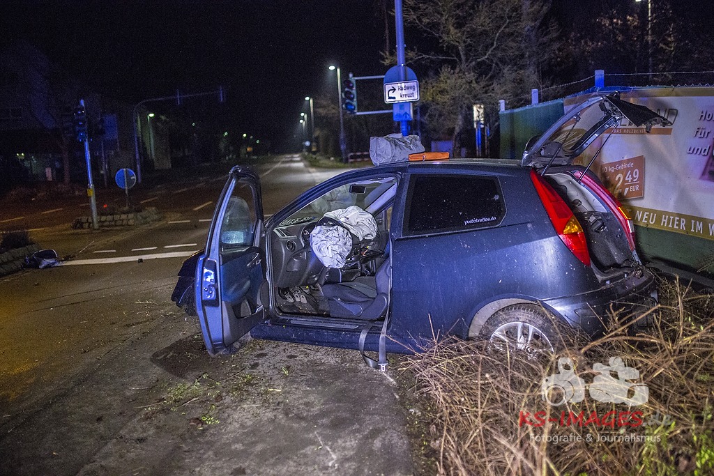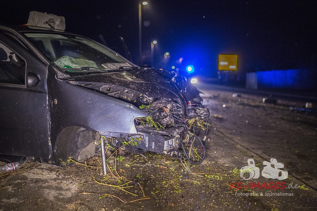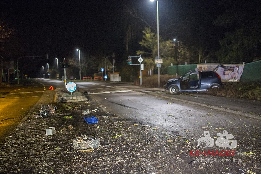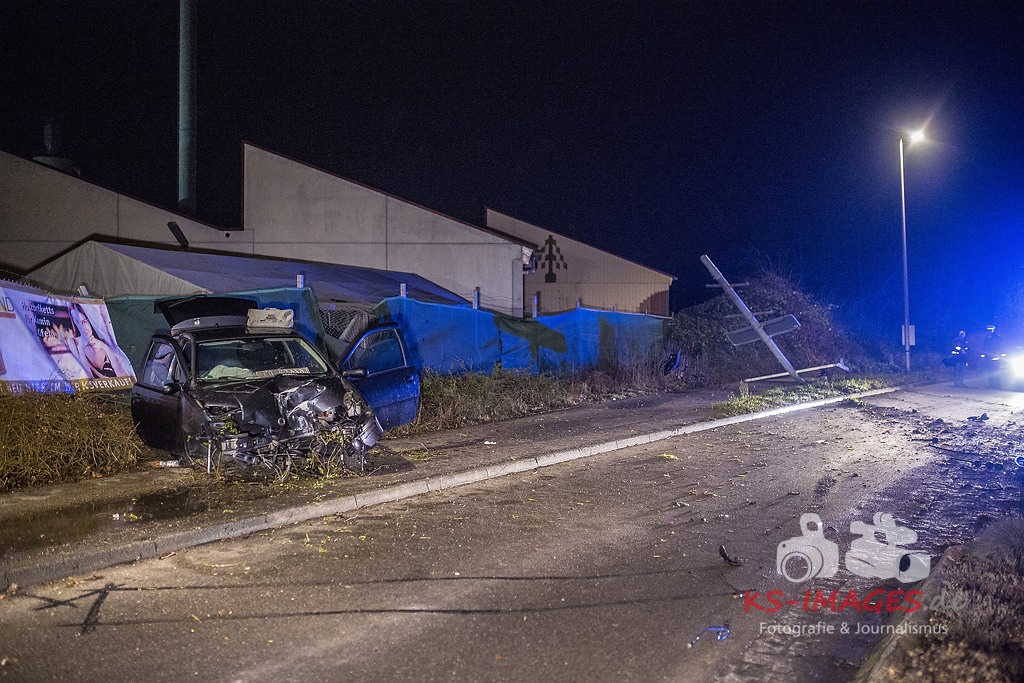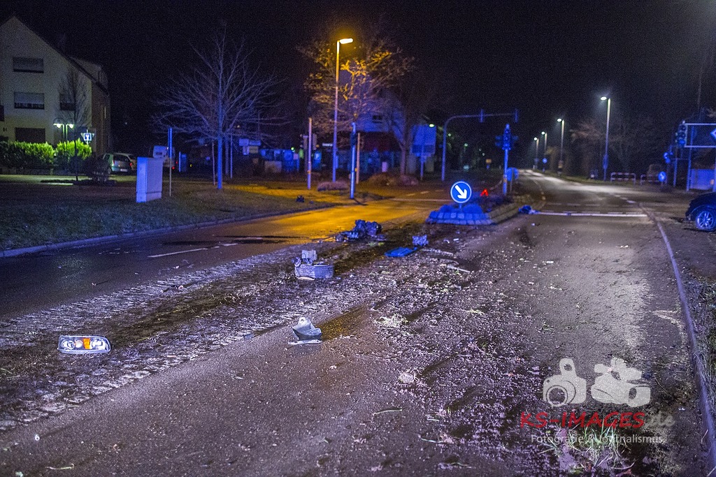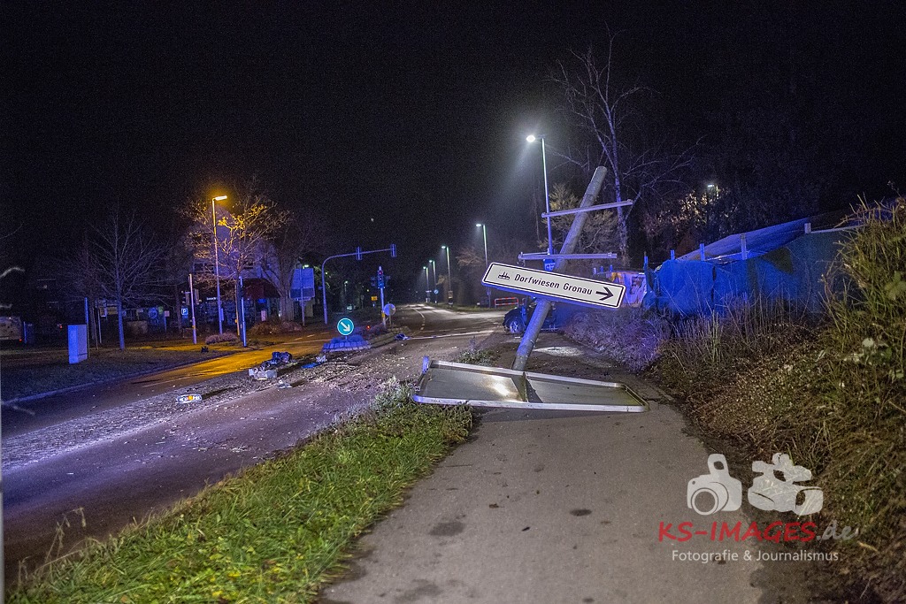 Am Montagmorgen, gegen 01:00 Uhr, befuhr ein 23- Jähriger mit seinem Pkw die L 1100 von Großbottwar her kommend in Richtung Beilstein. Ca. 50m vor der Einmündung zur Gronauer Straße kommt er infolge überhöhter Geschwindigkeit nach rechts von der Fahrbahn ab und kollidiert mit einem Verkehrsschildermast. Durch den Verkehrsunfall wurden sowohl der Fahrzeuglenker als auch der 23-jährige Beifahrer leicht verletzt. Am Pkw entstand ein wirtschaftlicher Totalschaden in Höhe von ca. 4000 Euro. Am Schildermast entstand ein Sachschaden in Höhe von etwa 3500 Euro. Da im Rahmen der Unfallaufnahme eine alkoholische Beeinflussung festgestellt werden konnte, wurde eine Blutentnahme veranlasst und der Führerschein einbehalten.