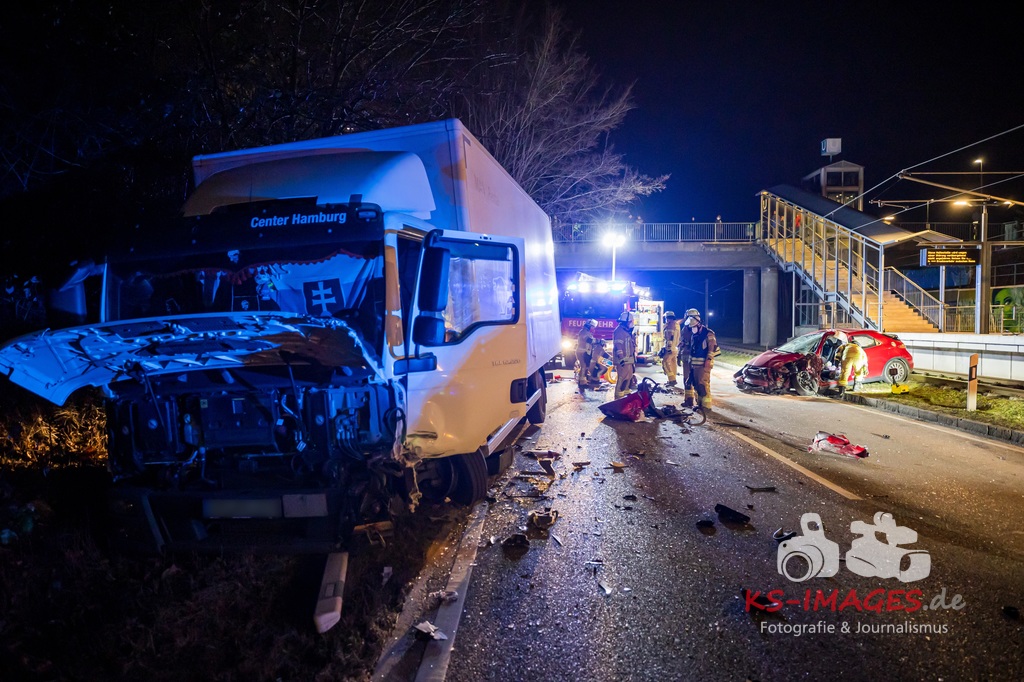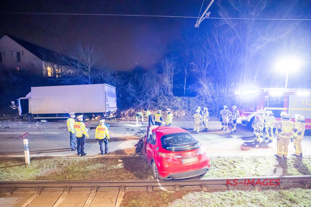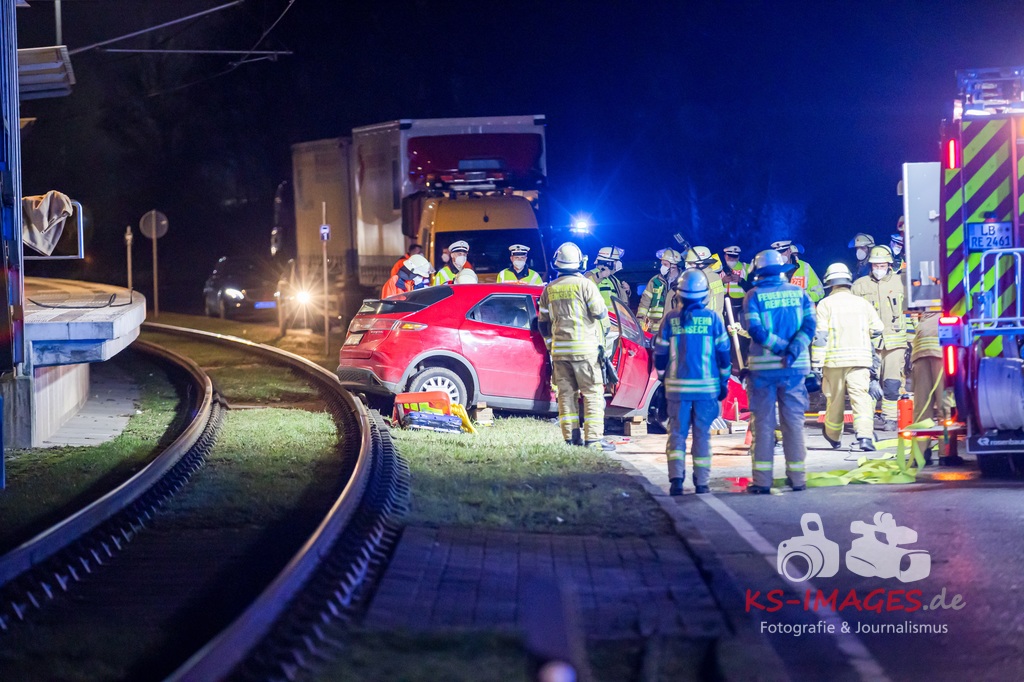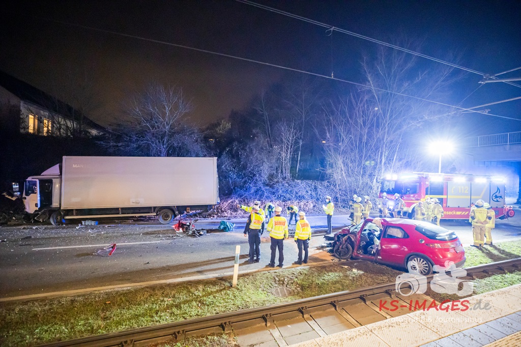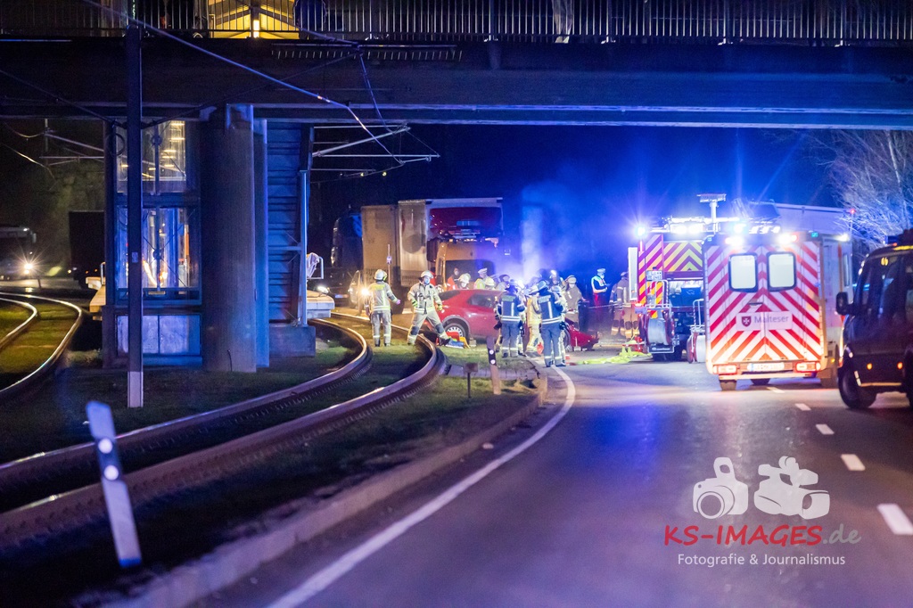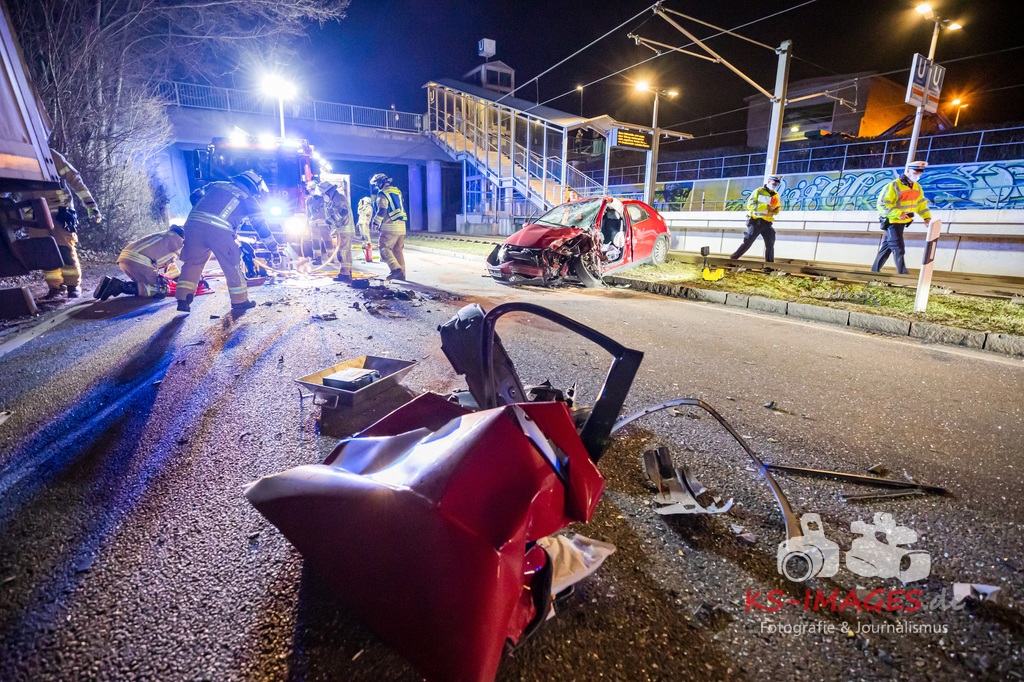 REMSECK / ALDINGEN: Gegen 17.30 Uhr befuhr eine 51-jährige Honda-Fahrerin die Neckartalstraße in Richtung Neckargröningen und kam kurz vor der Schleuse Aldingen aus noch ungeklärter Ursache in den Gegenverkehr. Dort stieß sie frontal mit einem entgegenkommenden Lkw der Marke MAN eines 43-Jährigen zusammen. Durch den Aufprall wurde der Honda Civic über die Fahrbahn geschleudert und kam auf den Gleisen der U-Bahn zum Stehen.