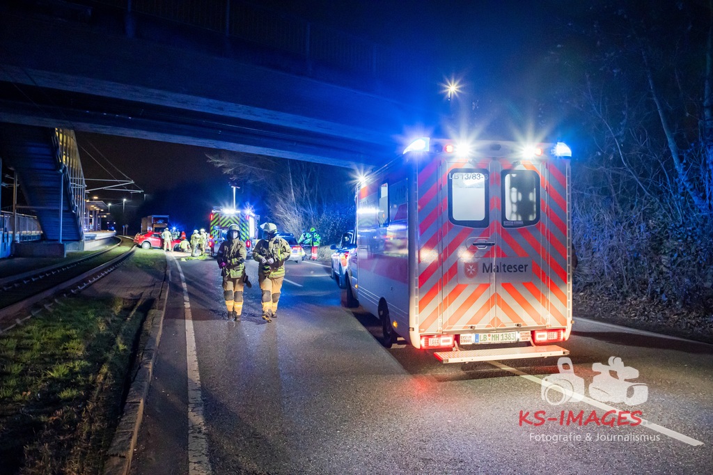 Im Einsatz befanden sich die Feuerwehr Remseck mit sechs Fahrzeugen und 34 Wehrleuten, das DRK mit zwei Fahrzeugen und einem Notarzt sowie fünf Streifenwagenbesatzungen des Polizeipräsidiums Ludwigsburg. Text: Polizeipräsidium Ludwigsburg.