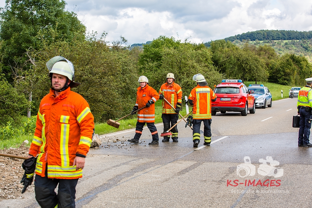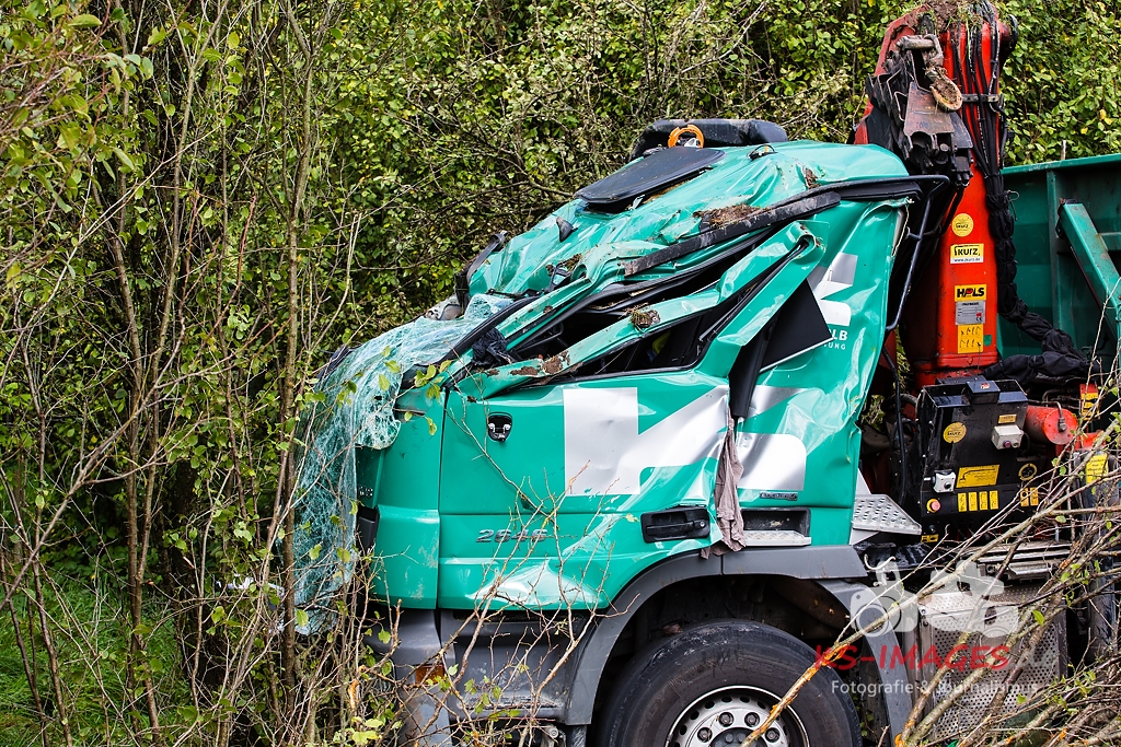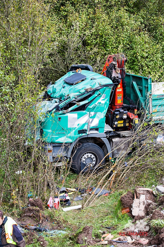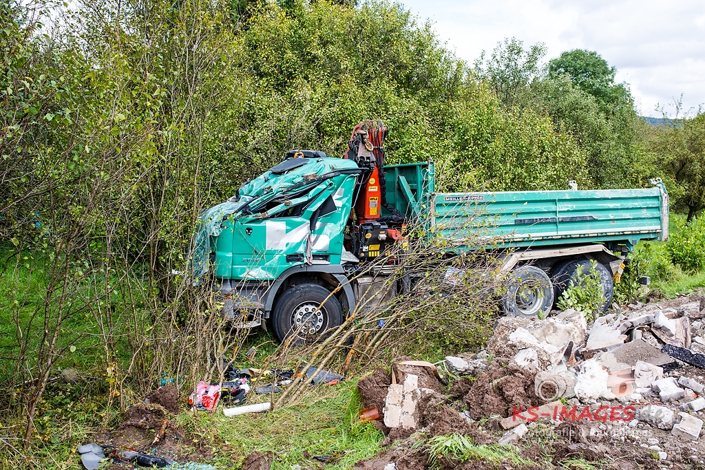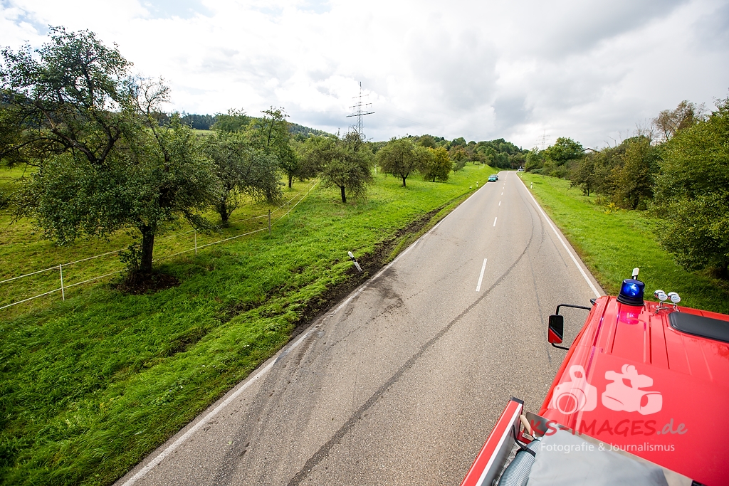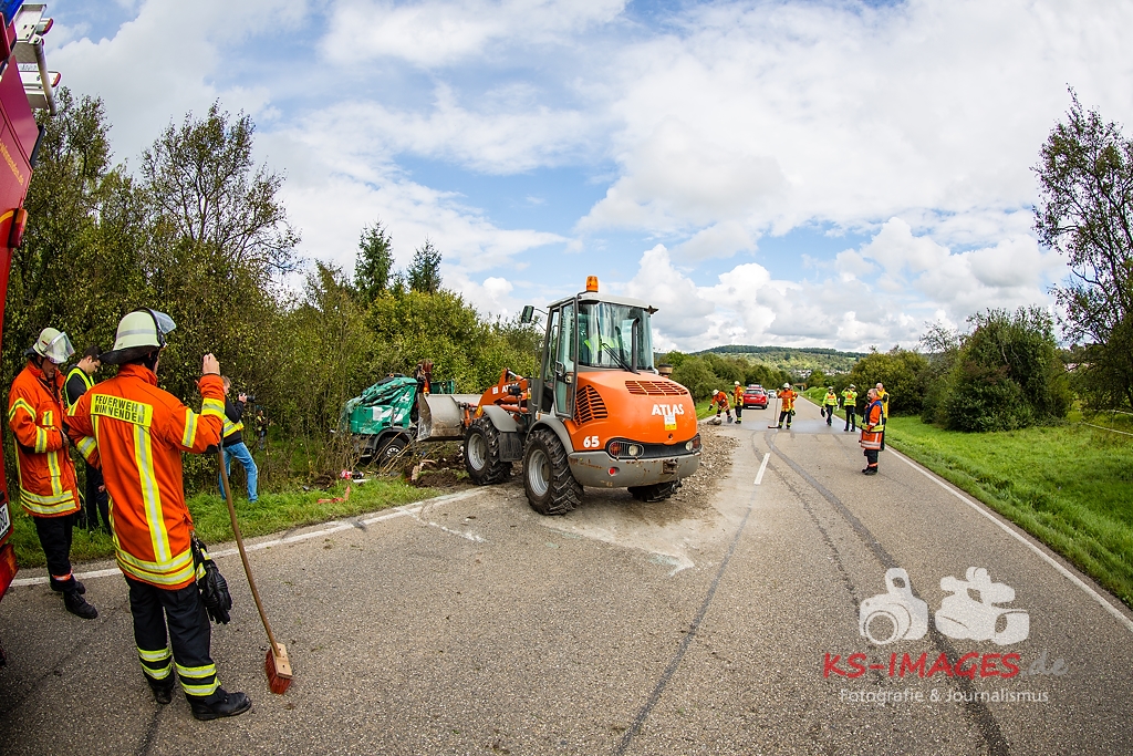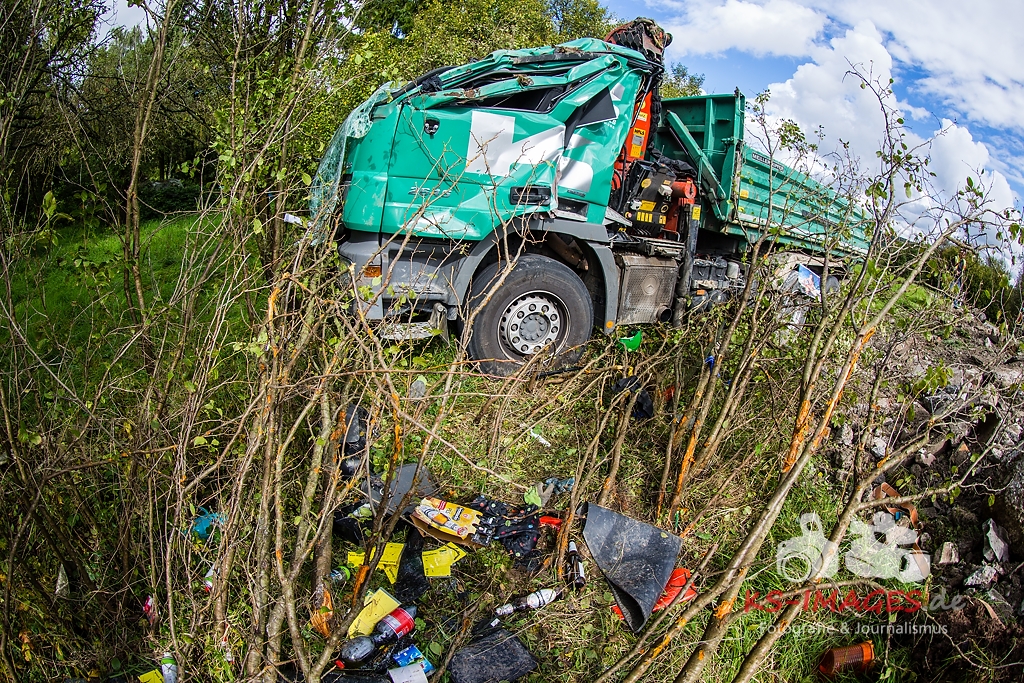 Fotostrecke: Fahrer eines LKW verlor alkoholisiert die Kontrolle – LKW überschlägt sich Fahrer von Feuerwehr befreit – L1140 Winnenden 18.09.2017
