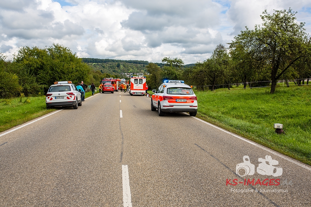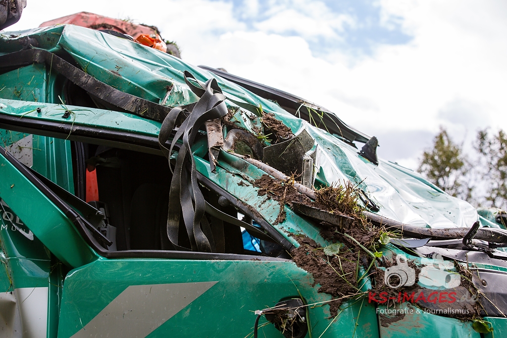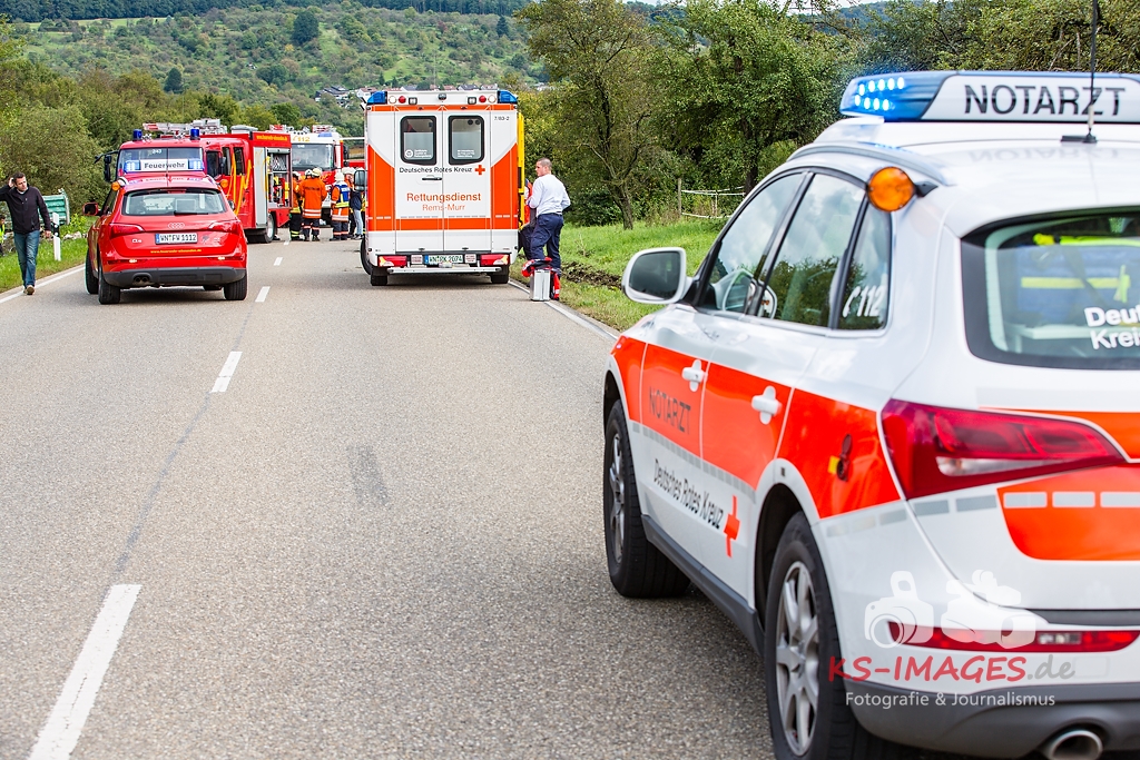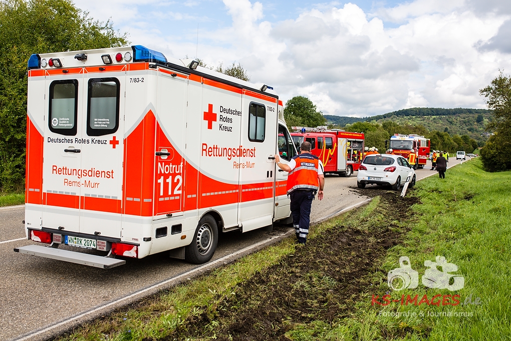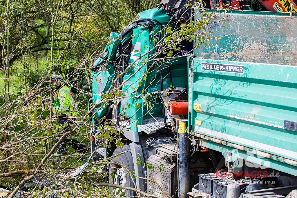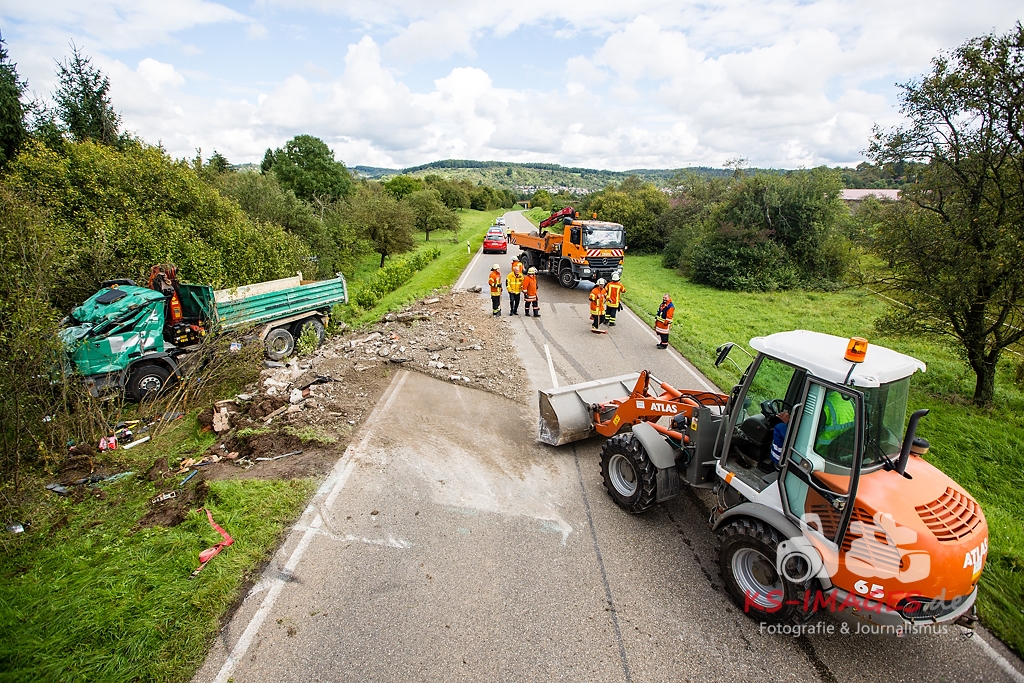 Fotostrecke: Fahrer eines LKW verlor alkoholisiert die Kontrolle – LKW überschlägt sich Fahrer von Feuerwehr befreit – L1140 Winnenden 18.09.2017