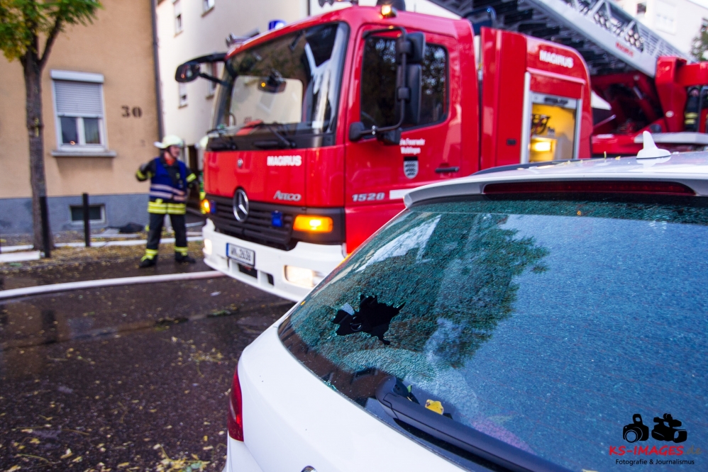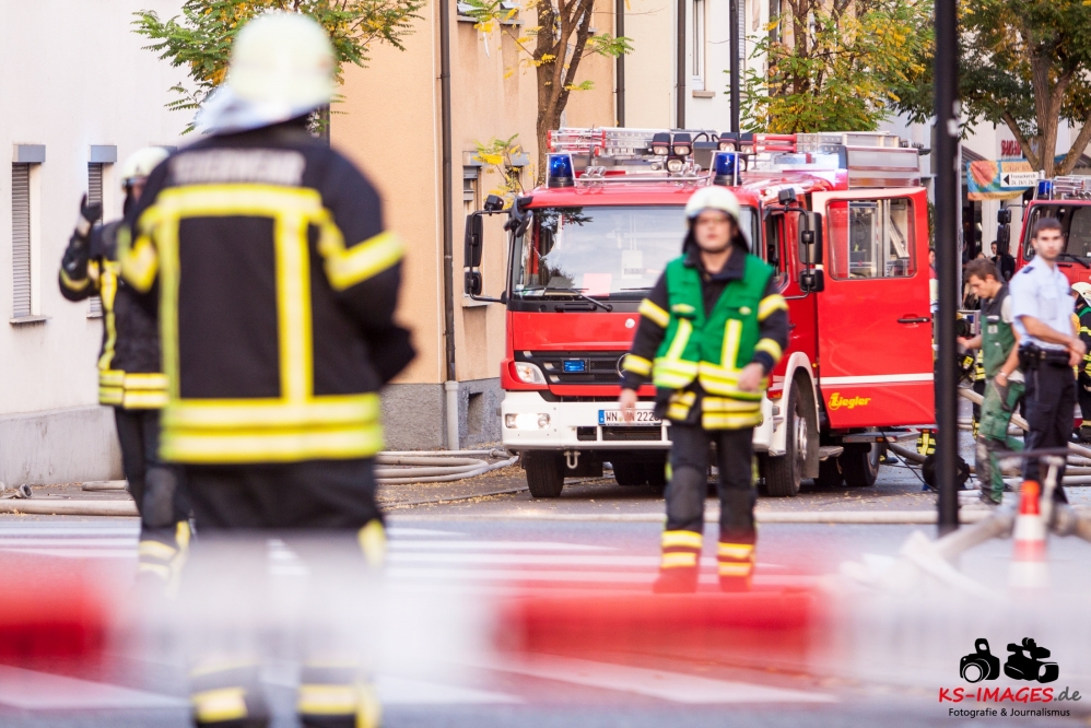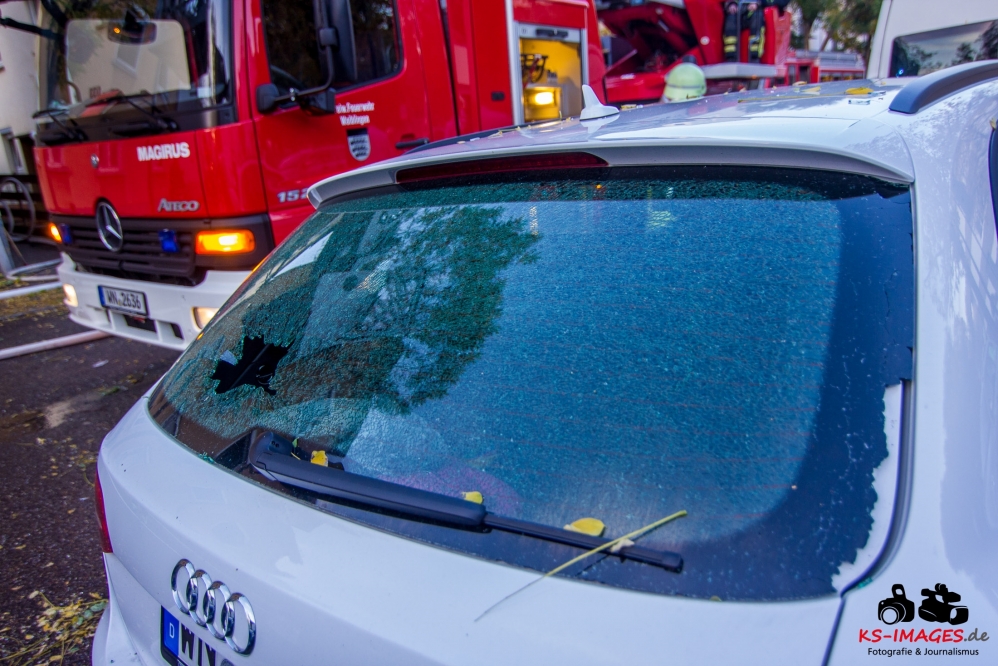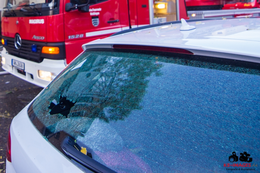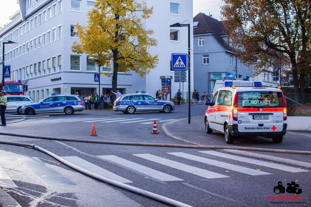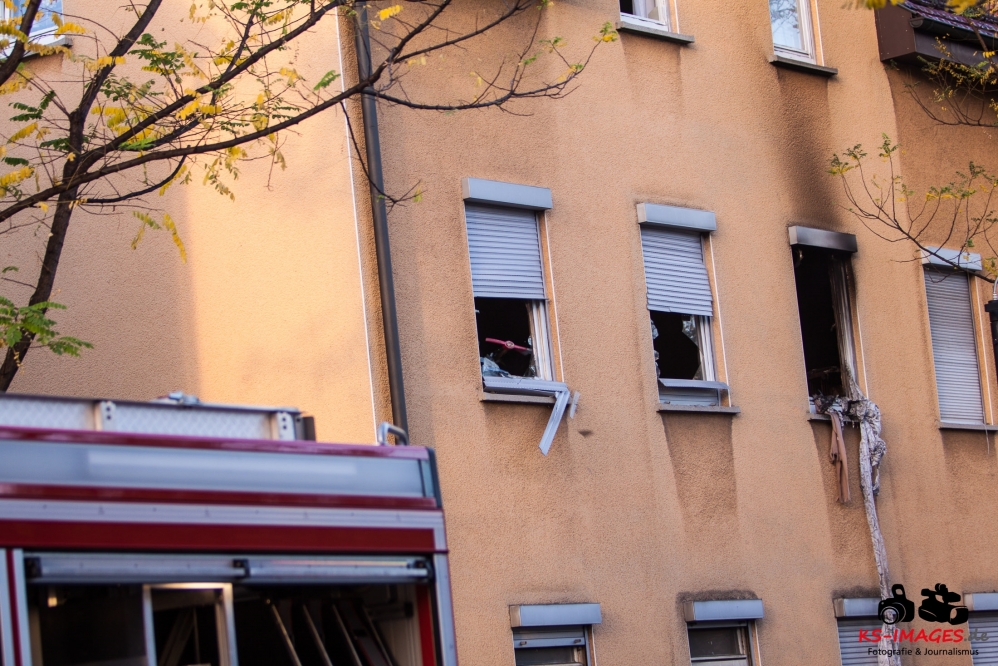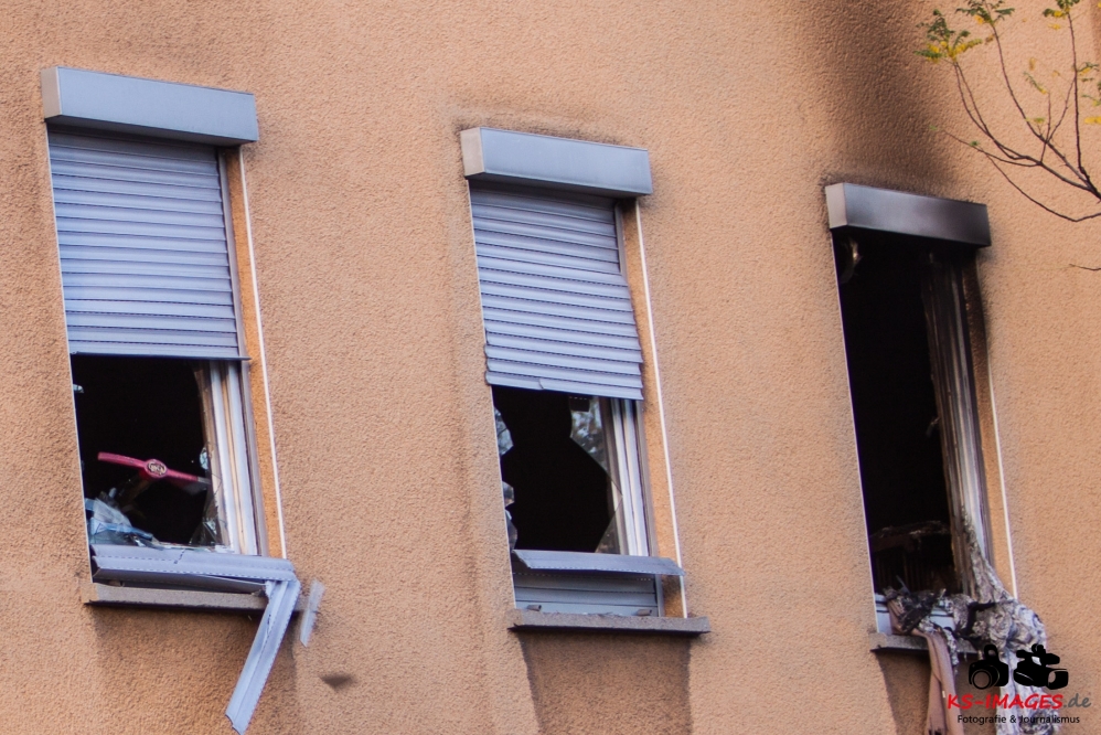 Ein Toter, eine lebensgefährlich Verletzte und ein Schwerverletzter wurden Opfer eines Wohnhausbrandes in der Waiblinger Fronackerstraße am späten Dienstagnachmittag. Kurz vor Toedlicher Brand Waiblingen 22.10.2013_ 000817:00 Uhr vernahmen Anwohner mehrere laute Knallgeräusche und anschließend einen Brand im ersten Stock eines Mehrfamilienhauses am Rande der Waiblinger Innenstadt. Mit dem Brand ging eine Verpuffung oder gar eine Explosion einher. In der Wohnung im ersten Stock zerbarsten Scheiben, Rollladenteile und Glasscherben flogen bis zu 20 Meter weit und beschädigten Fahrzeuge. Im Zuge der sofort eingeleiteten Lösch- und Rettungsmaßnahmen der Waiblinger Feuerwehr konnten zwei Personen aus dem Haus geborgen werden. Es handelte sich um einen Mann, der nur noch tot aufgefunden werden konnte, und eine Frau, die mit lebensgefährlichen Verletzungen in eine Spezialklinik eingeliefert wurde. Die Identität beider Personen steht derzeit noch nicht fest. Möglicherweise handelt es sich um Bewohner des Hauses. Ein 80-jähriger Hausbewohner erlitt eine Herzattacke und musste ebenfalls stationär ins Krankenhaus gebracht werden. Weitere Hausbewohner konnten sich selbst retten oder befanden sich zum Brandausbruch nicht in der Wohnung. Die Bewohner sind allesamt bei Bekannten oder Verwandten untergekommen. Insgesamt sind 10 Personen in dem Haus gemeldet. Ob Besucher zum Zeitpunkt des Brandausbruches ebenfalls im Haus waren ist nicht bekannt.