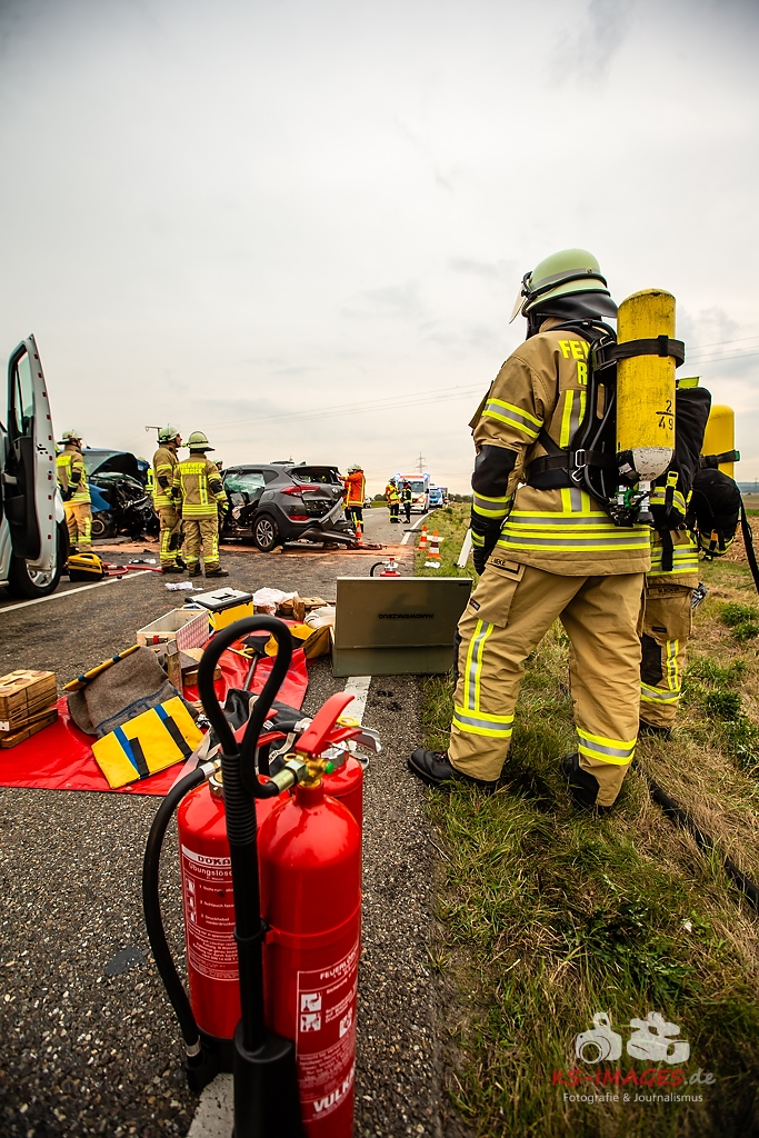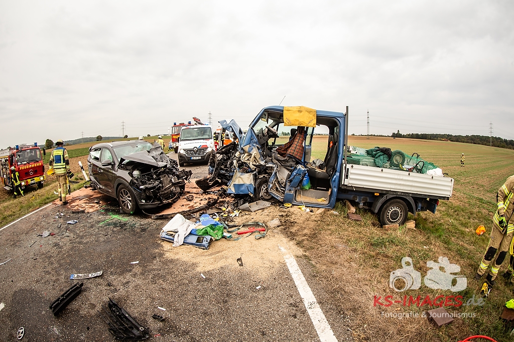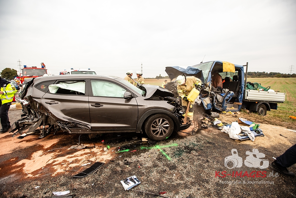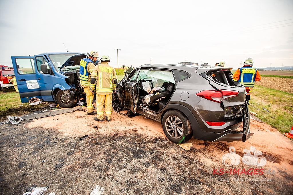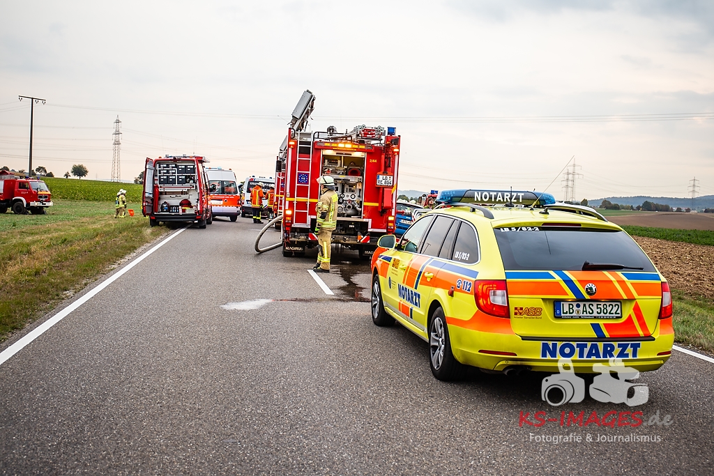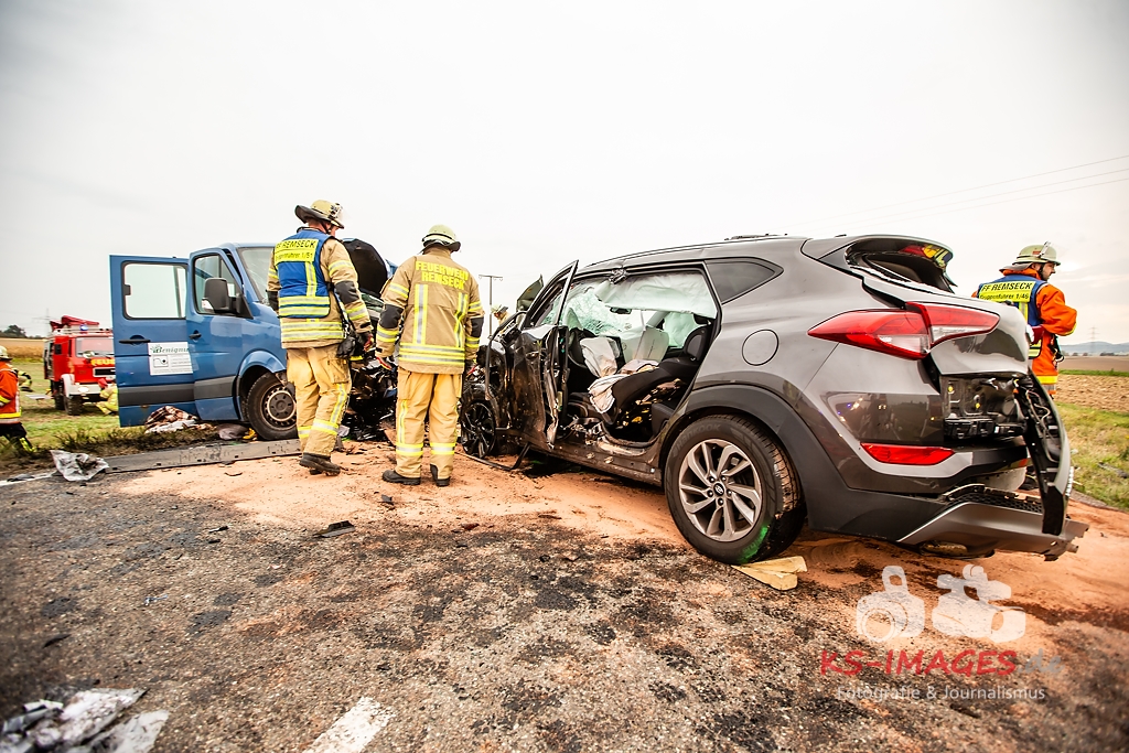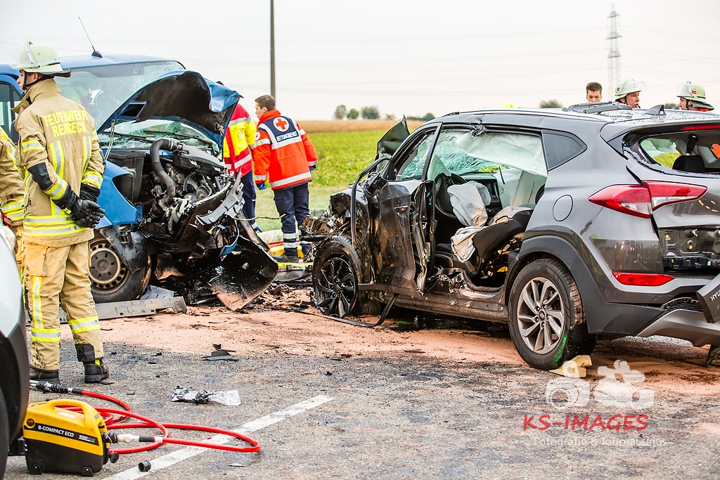 0 REMSECK AM NECKAR: Zwei Schwer- und zwei Leichtverletzte sowie Sachschaden in Höhe von etwa 13.000 Euro forderte am Montagmorgen ein Verkehrsunfall auf der L 1140 zwischen Neckarrems und Hohenacker. Eine 60-jährige Autofahrerin war gegen 07:15 Uhr mit ihrem Hyundai auf der Landesstraße in Richtung Hohenacker unterwegs und wollte einen vorausfahrenden Sattelzug überholen. Dabei achtete sie nicht auf den entgegenkommenden Klein-Lkw eines 58-Jährigen, streifte zunächst den Auflieger des Sattelzuges und stieß schließlich frontal mit dem Klein-Lkw zusammen. Die 60-Jährige und der 58-Jährige wurden in ihren stark beschädigten Fahrzeugen eingeklemmt und mussten von der Feuerwehr befreit werden. Sie wurden mit schweren Verletzungen vom Rettungsdienst in Krankenhäuser gebracht. Zwei Mitfahrer im Klein-Lkw kamen mit leichten Verletzungen davon, wurden jedoch ebenfalls zur Behandlung in ein Krankenhaus gebracht. Für die Dauer der Unfallaufnahme, der Bergung der Fahrzeuge und der Reinigungsarbeiten musste die Landesstraße bis 10:50 Uhr gesperrt und der Verkehr örtlich umgeleitet werden.